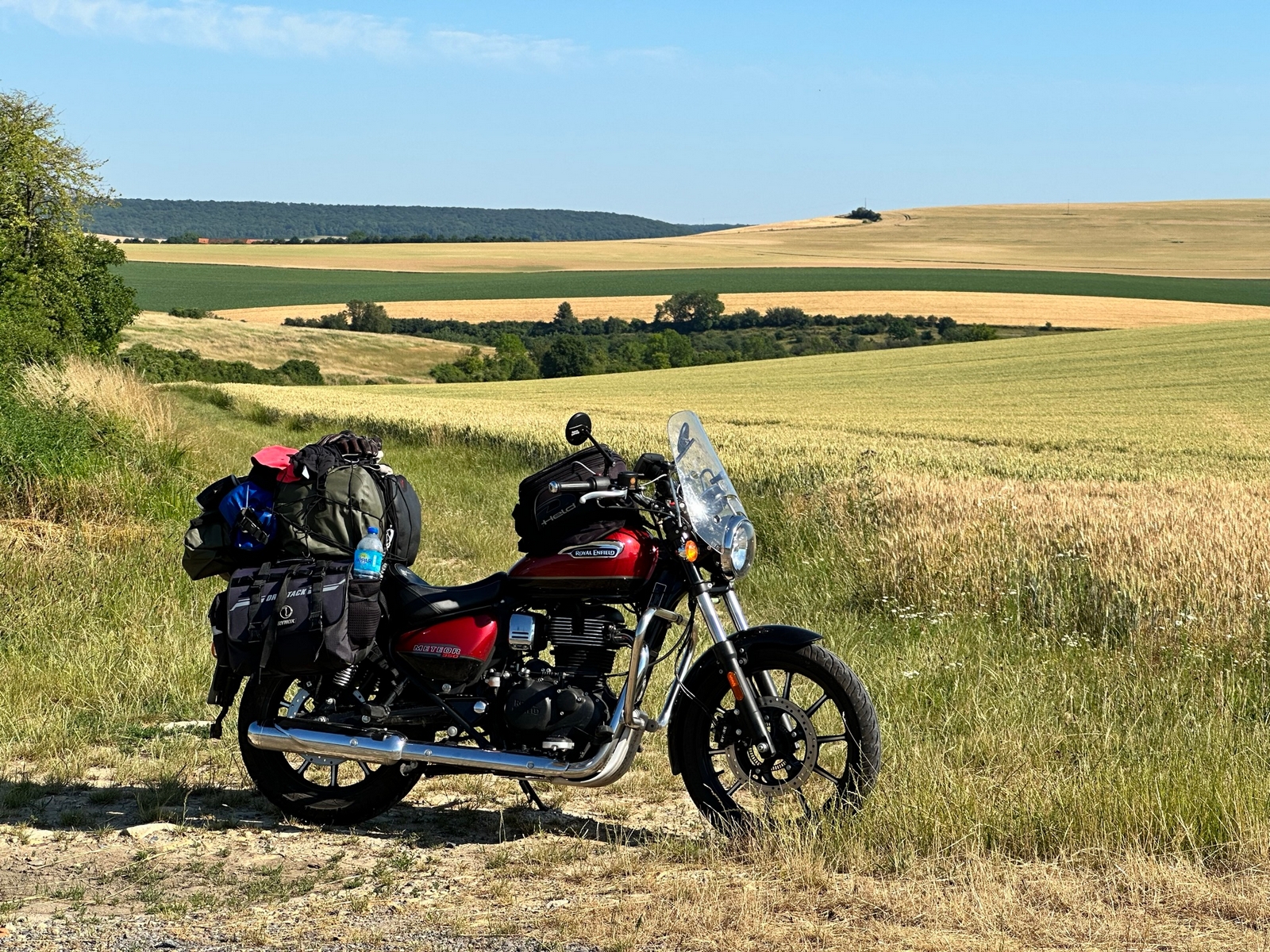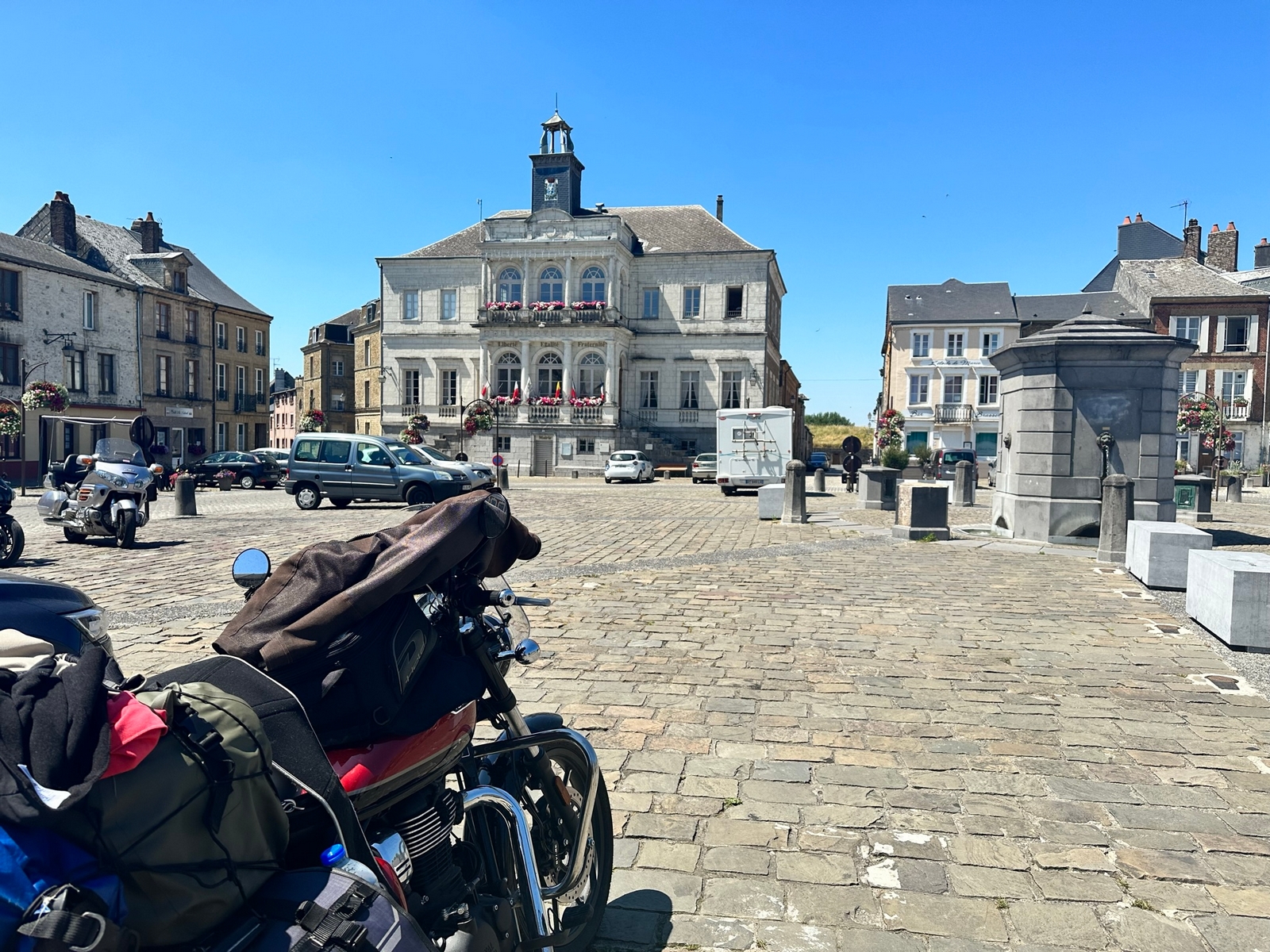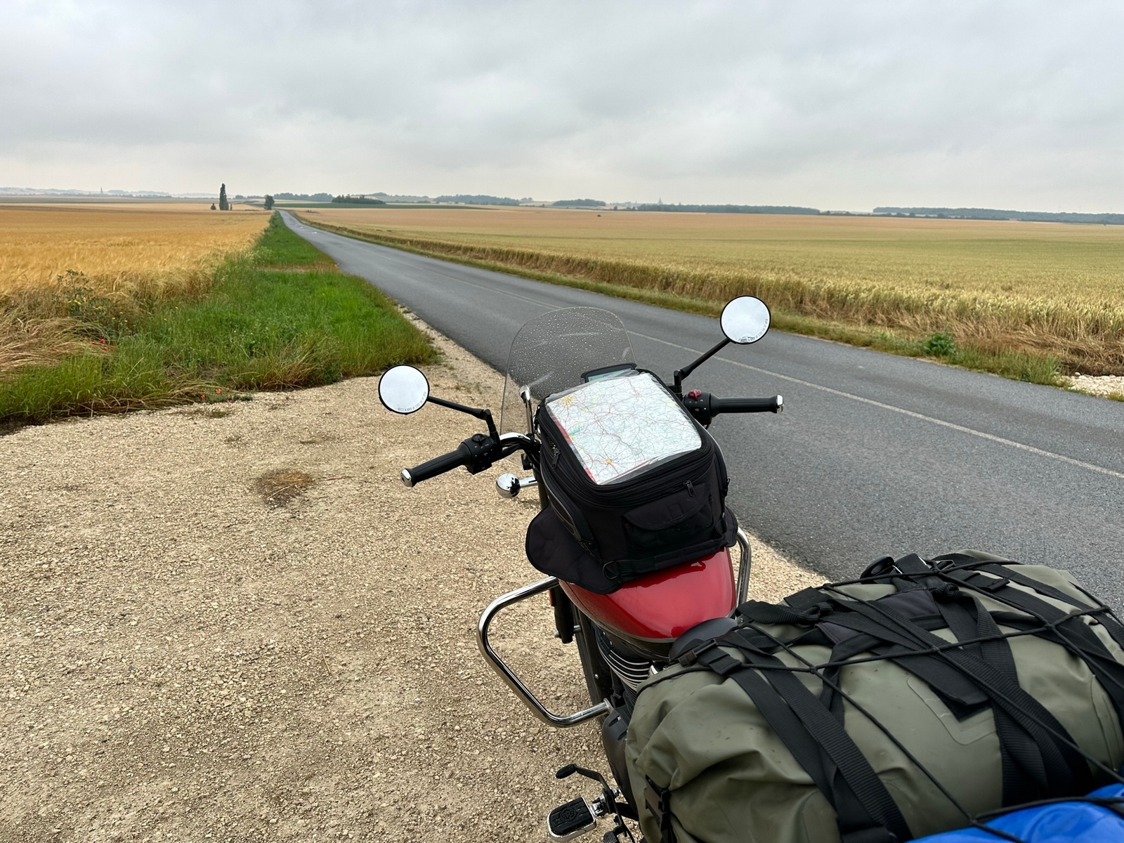 Combleux, jeudi 22 Juin, le temps est à la pluie, c’était prévu, je jette un œil à la météo, une fenêtre sans pluie vers 10h30/11h. J’en profite pour partir, la moto est chargée depuis la veille, la combine de pluie est sortie, j’ai juste à l’enfiler. 10h50, je roule. Forêt domaniale d’Orléans, puis le Gâtinais, j’évite l’agglomération de Fontainebleau et je prends plein Nord.