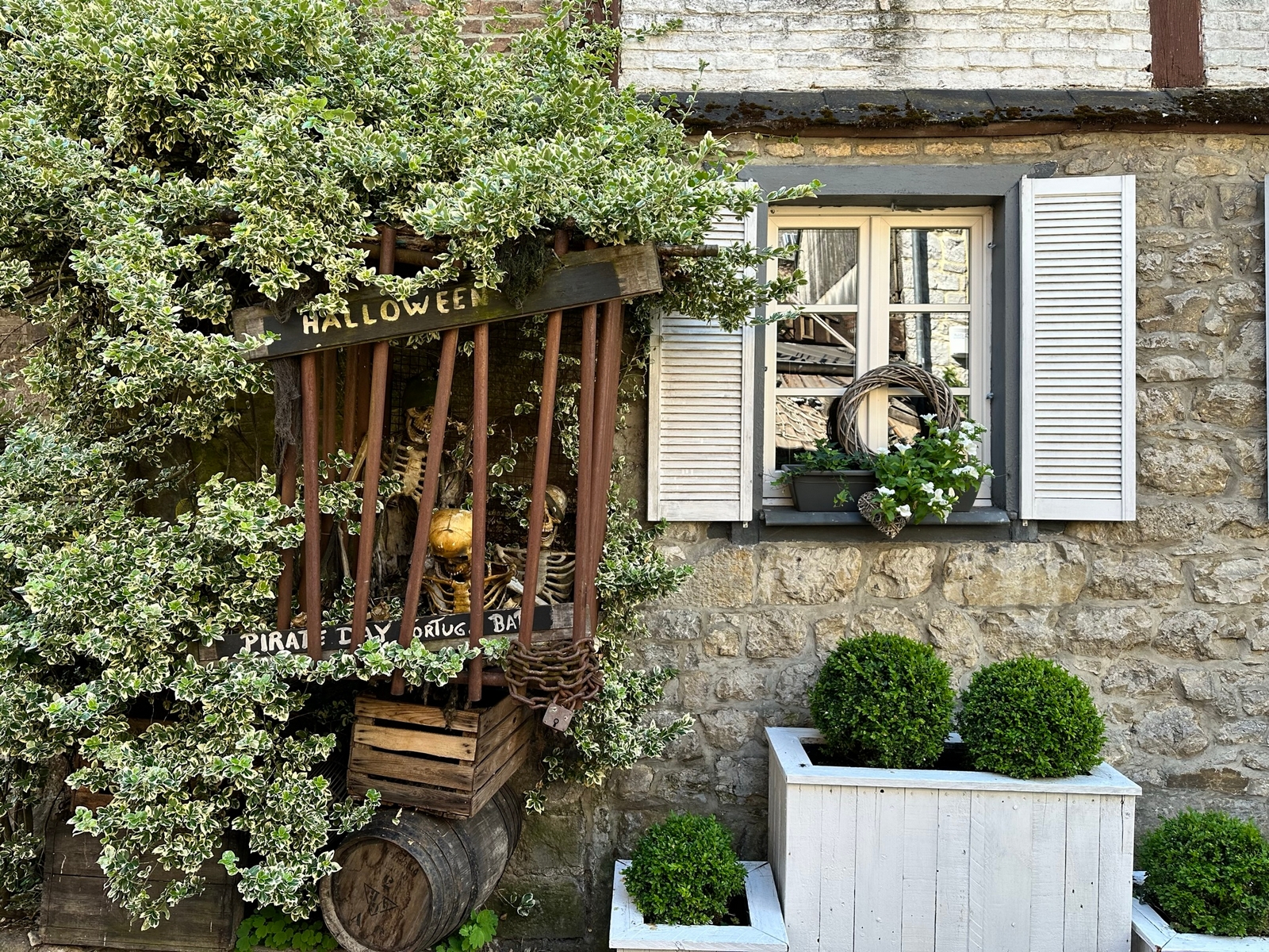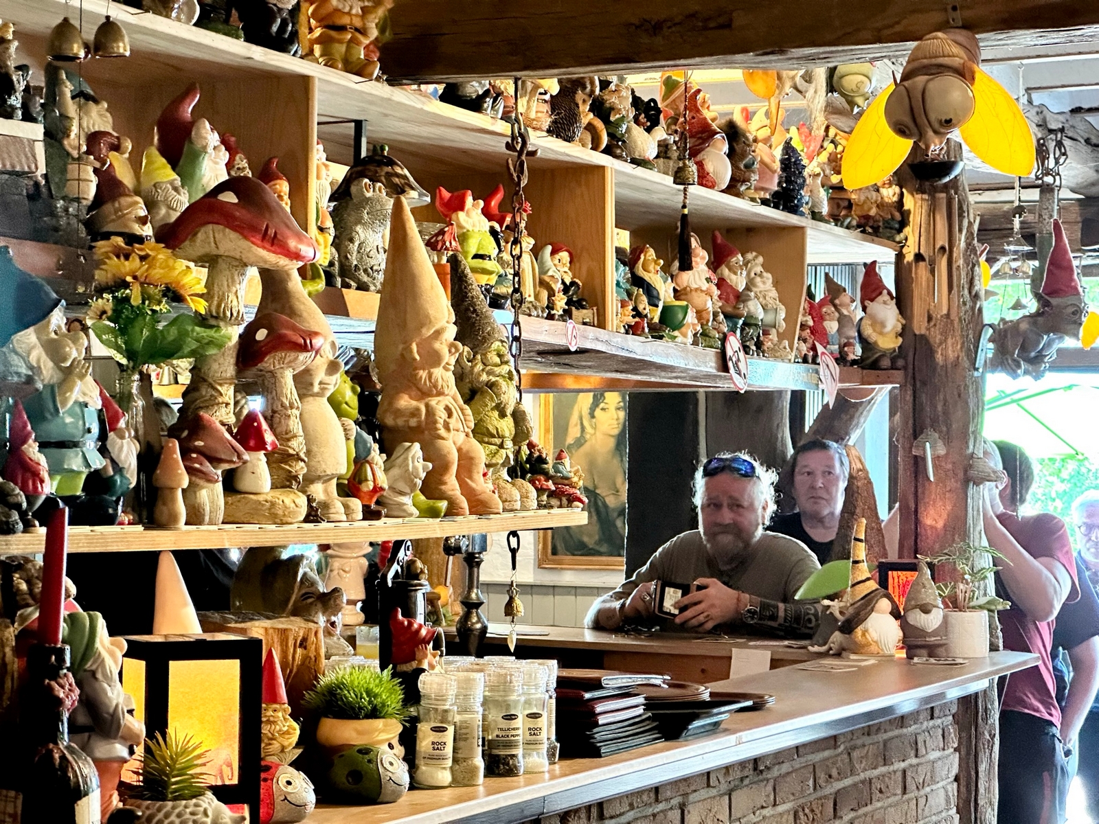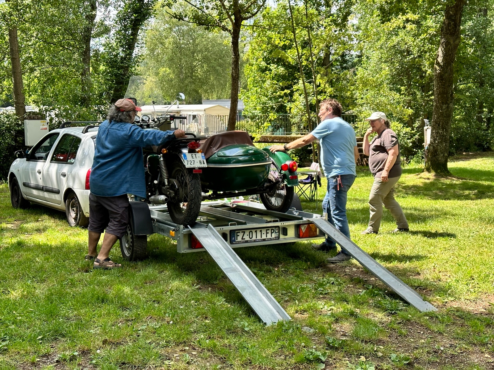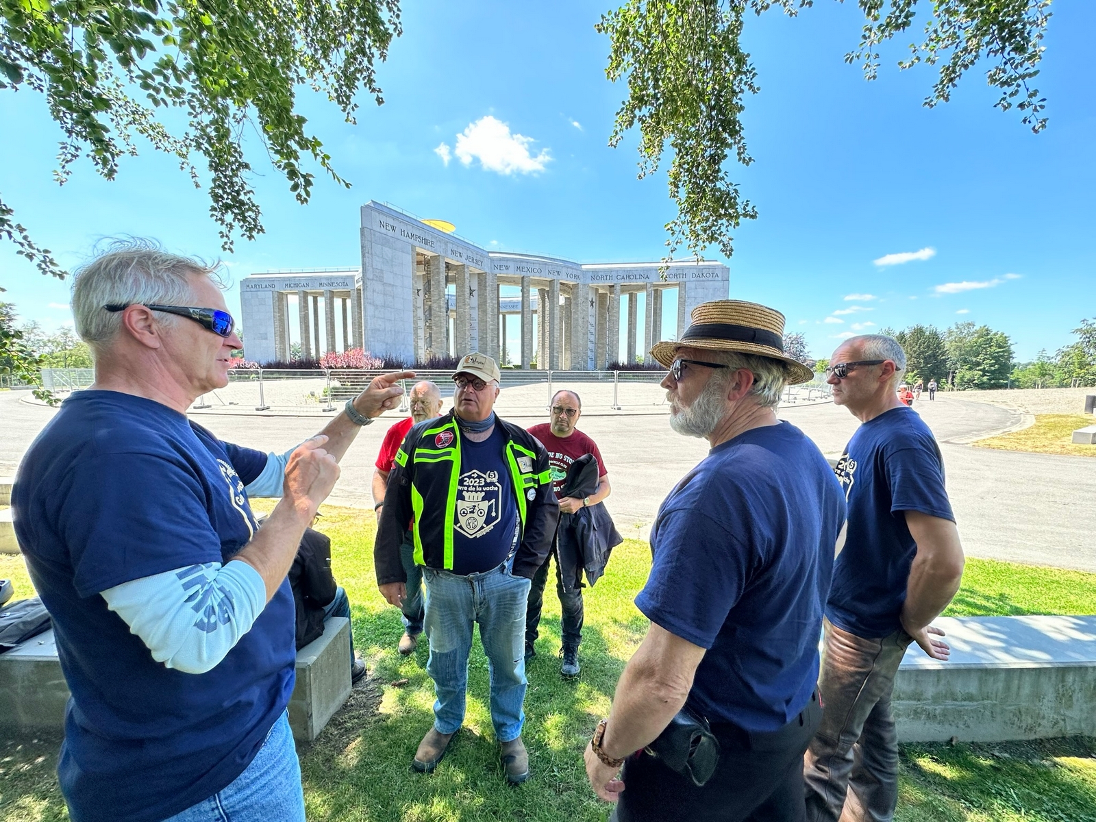 Le midi, le rendez-vous est fixé à un aérodrome site école de vol libre. Un Food-Truck est tout spécialement venu pour nous, on y trouve notre bonheur avec des pains saucisses , le bar de l’aérodrome nous sert les boissons et des frites pour ceux qui le désirent, vraiment une organisation au Top . On reprend nos petites routes pour aller au Musée de la Guerre de Bastogne, puis la soif se fait sentir, faut dire qu’il fait chaud et là on trouve une petite auberge dans un petit village au détour d’un virage, face à l’église, son parking sera rapidement envahi par nos motos et side-car. Et là, surprise, nous tombons sur une collection de plus de 2000 nains de jardin, extraordinaire. On a trouvé l’adresse du FLNJ, front de libération des nains de jardin !😉.