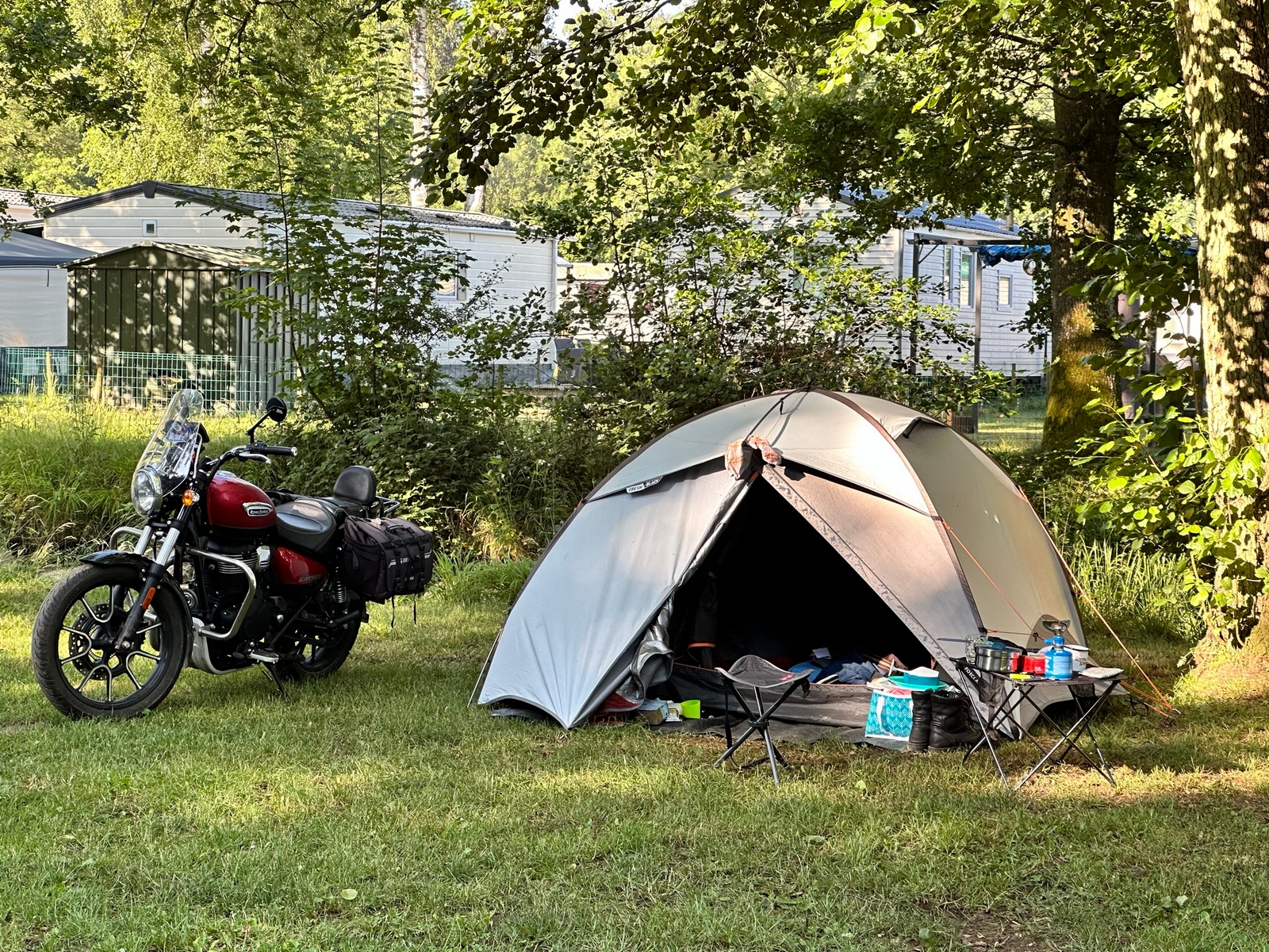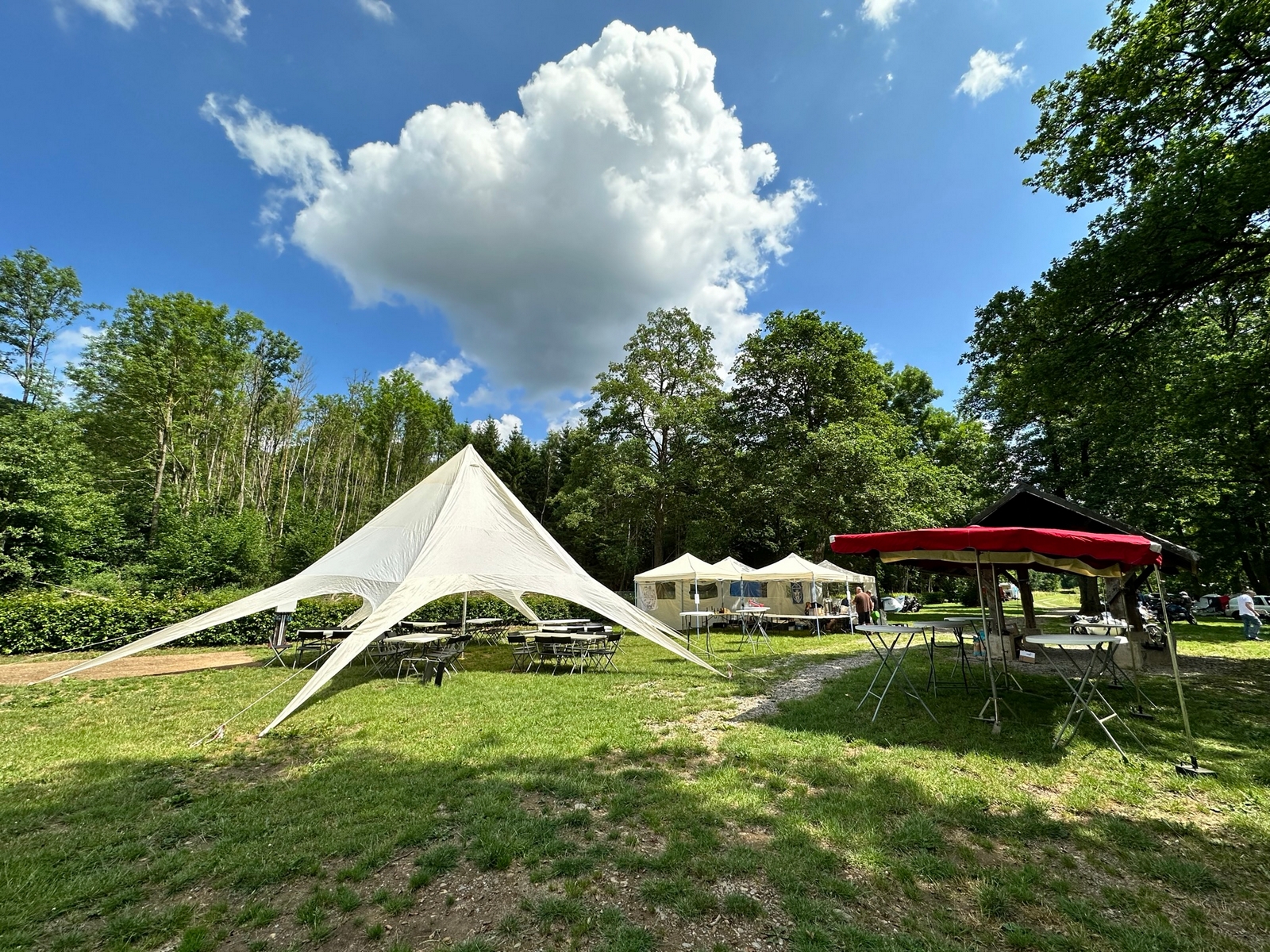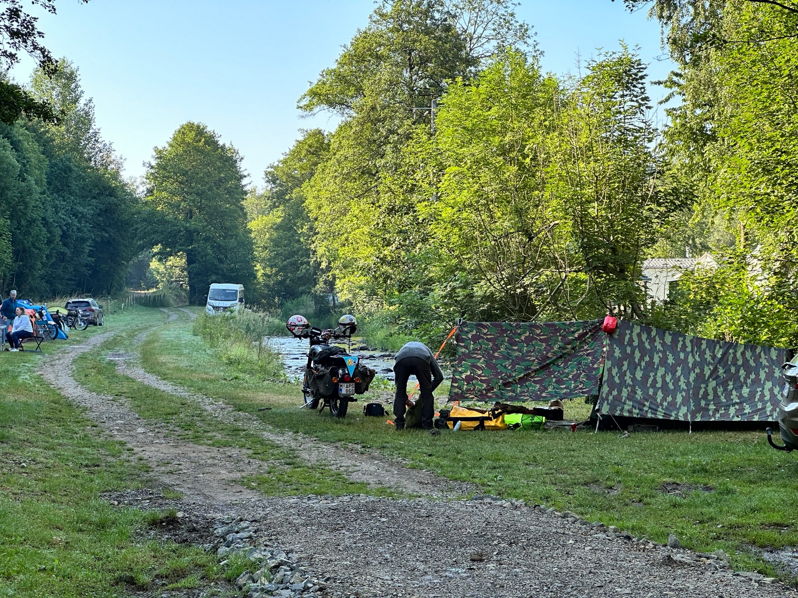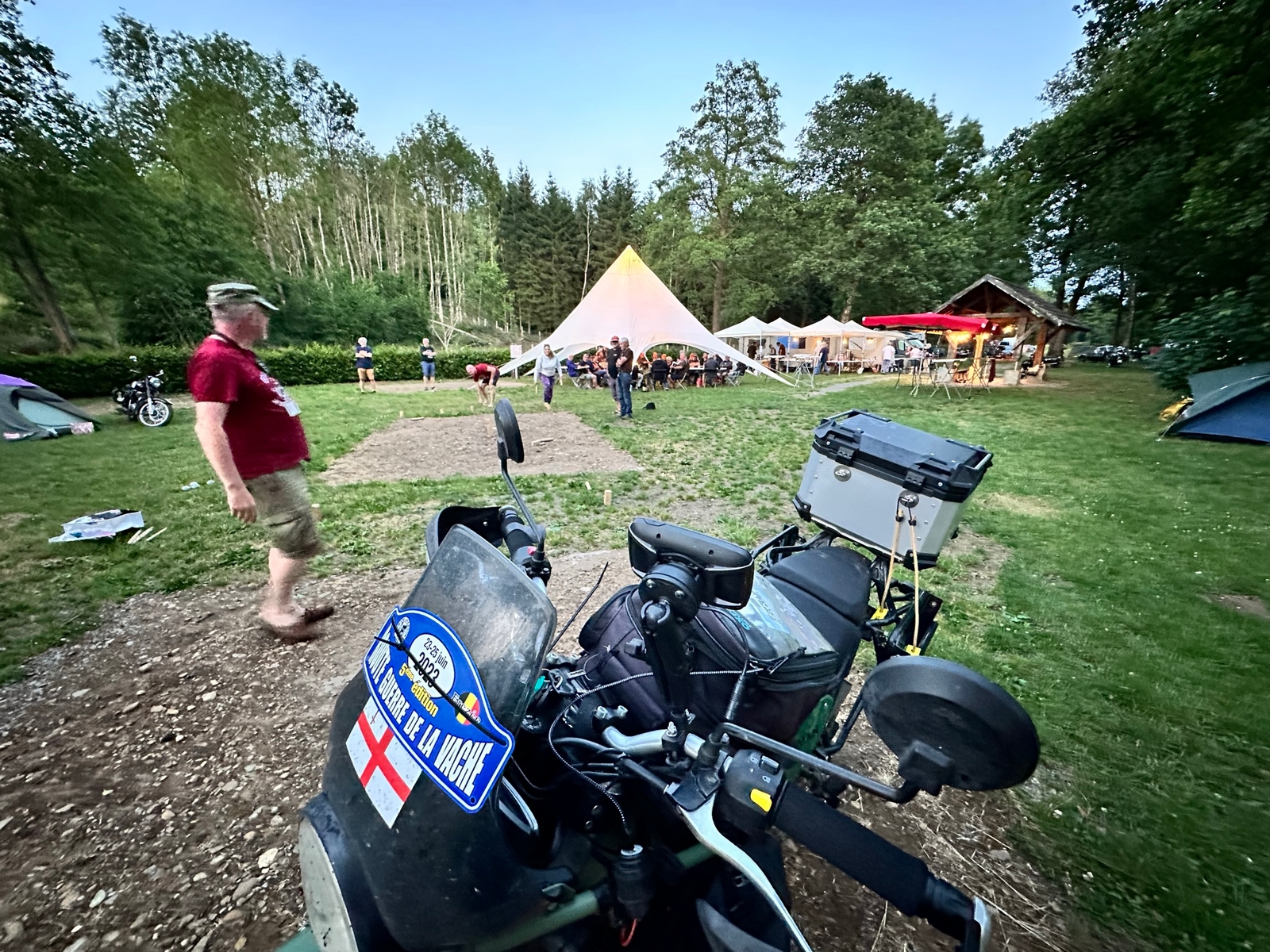 J’arrive à Sedan pour 19h, je mange un bout et je reprends la direction de La Belgique vers Bouillon, la pluie, forte ce coup ci, me cueille arrivé à la frontière et elle me tombera dessus jusqu’à mon arrivée, montage de la tente sous la pluie et une fois sous la tente et endormi la pluie cessera pour tout un week-end de soleil radieux comme l’ambiance qui m’attend.