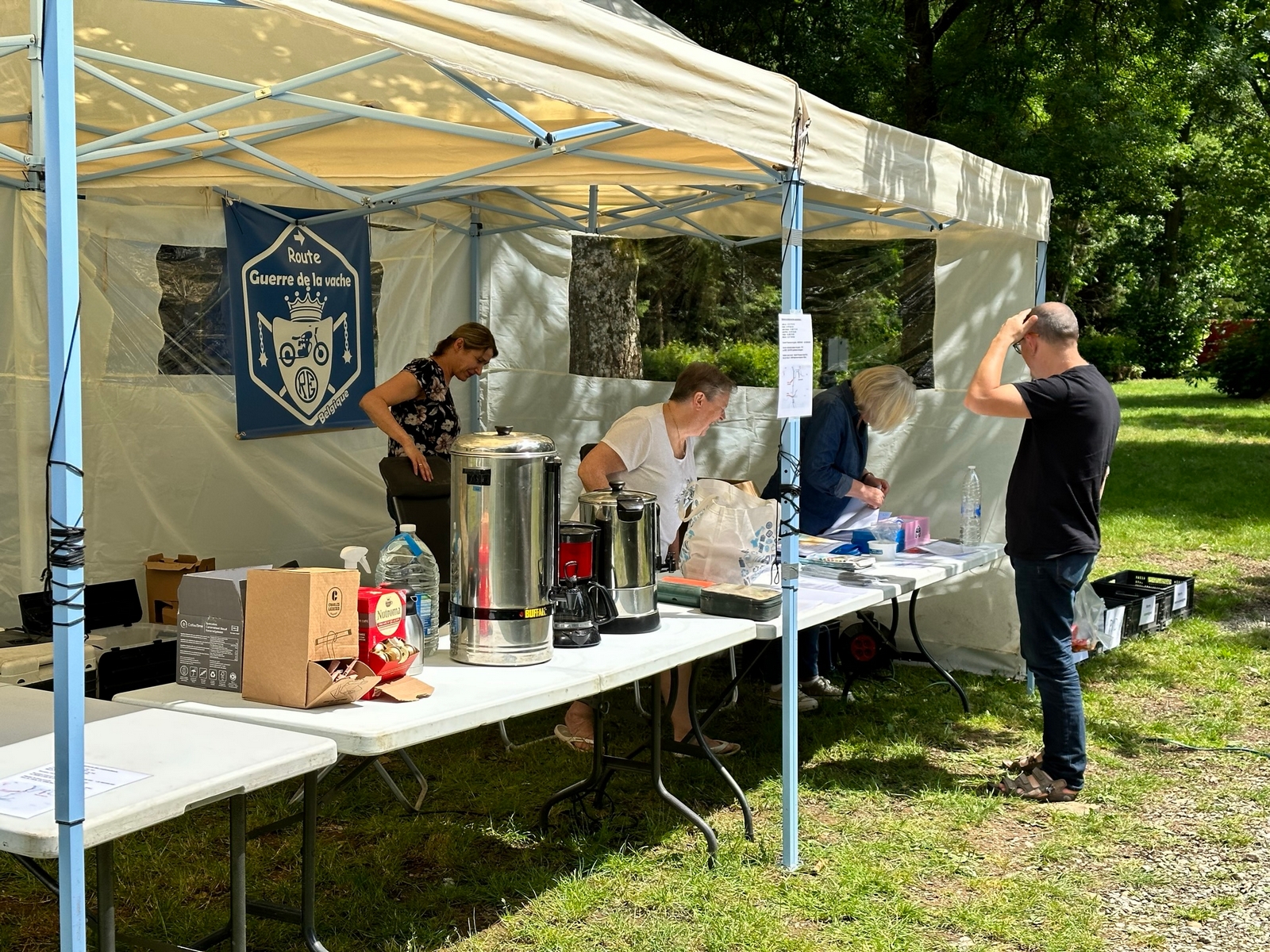 A mon retour je retrouve pas mal de monde, les copains organisateurs sont déjà à la tâche, montage des barnums , préparation des arrivées. Une organisation sans faille.