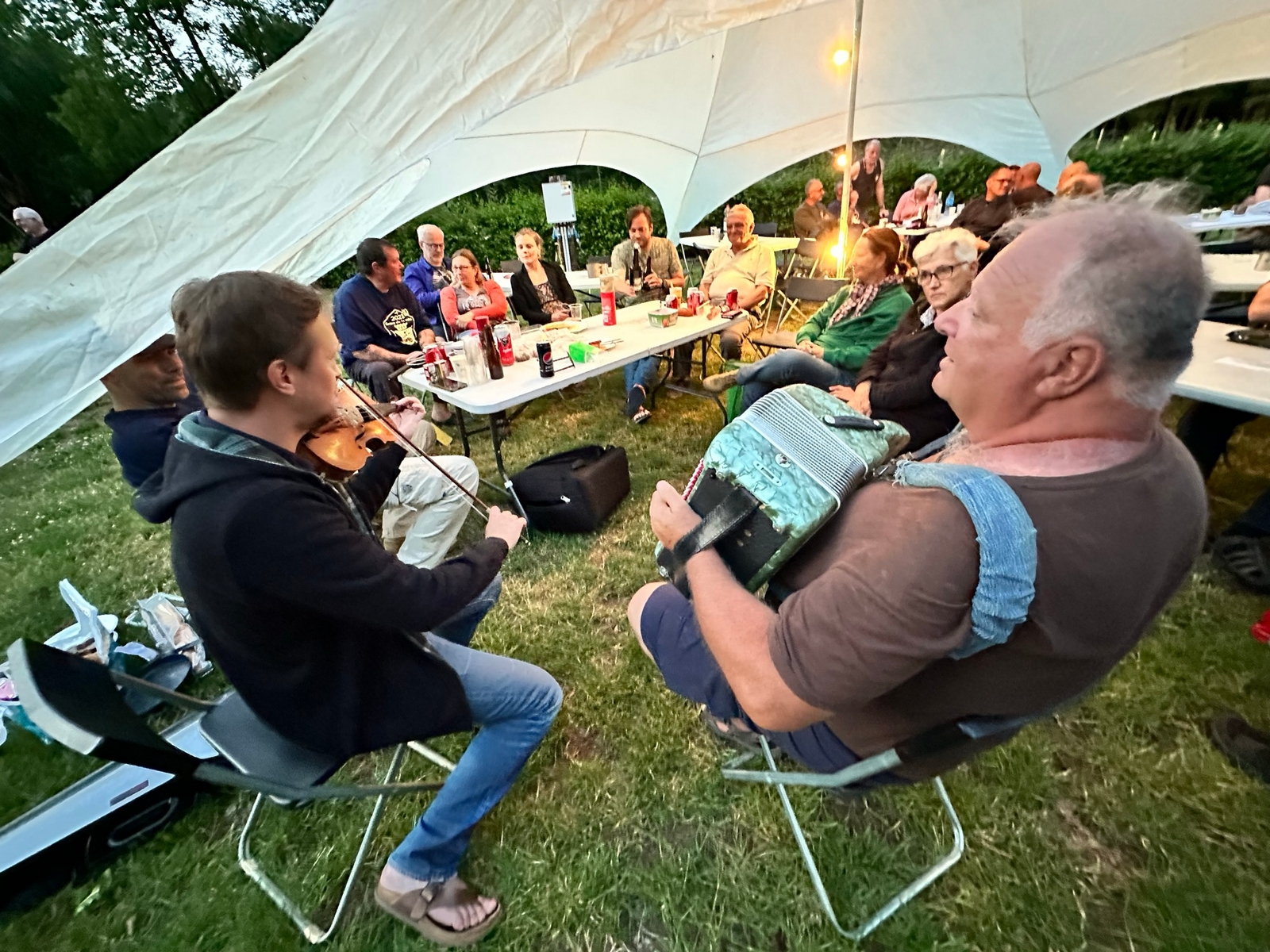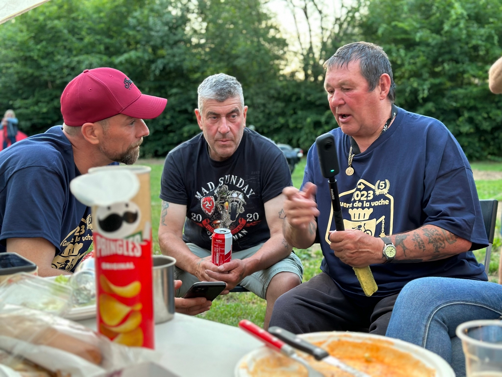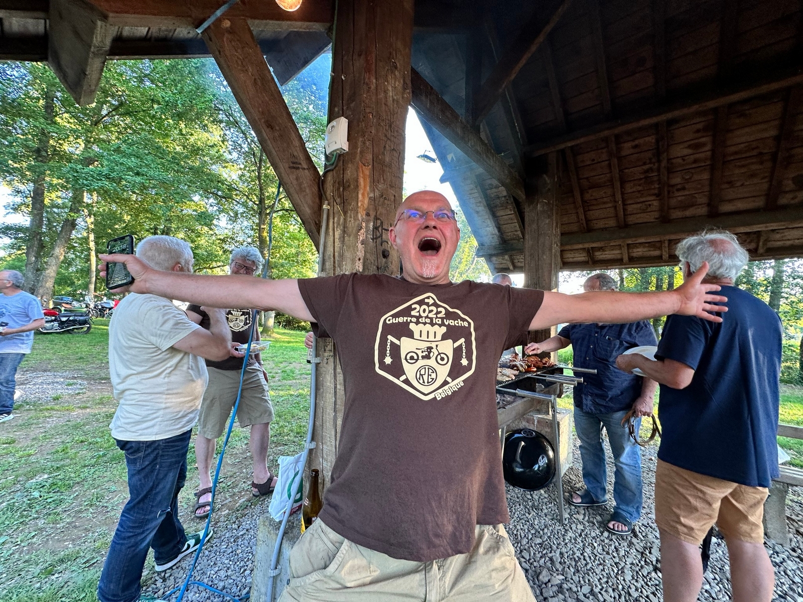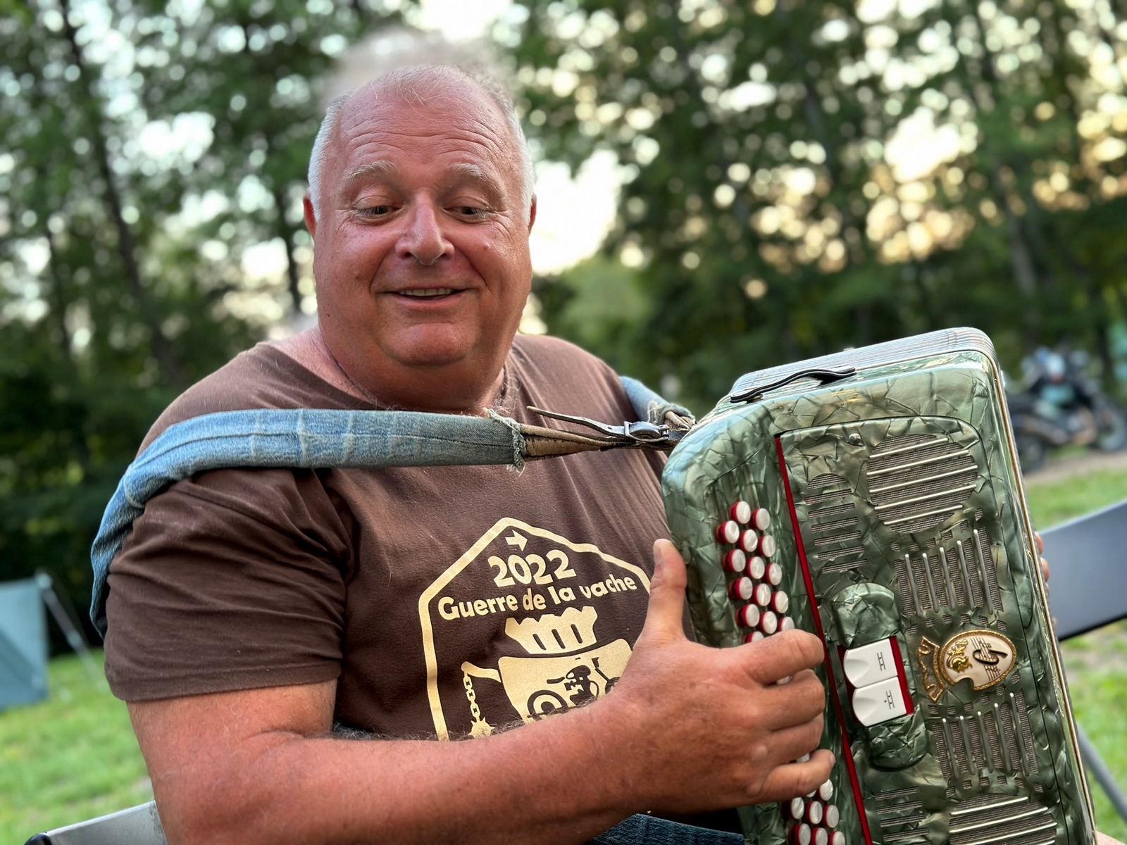 La soirée sera un vrai moment de partage et de bonheur, de retrouvailles, de nouvelles connaissances, certains jouent à des jeux sous l’œil de nos Royal montures, pendant que d’autre sortent accordéon et violon pour entamer des mélodies très festives. Super soirée mais il nous faut se coucher ( sur un matelas gonflé 😉) car demain nous attend une belle balade à travers la région sur les routes de La Guerre de la Vache.