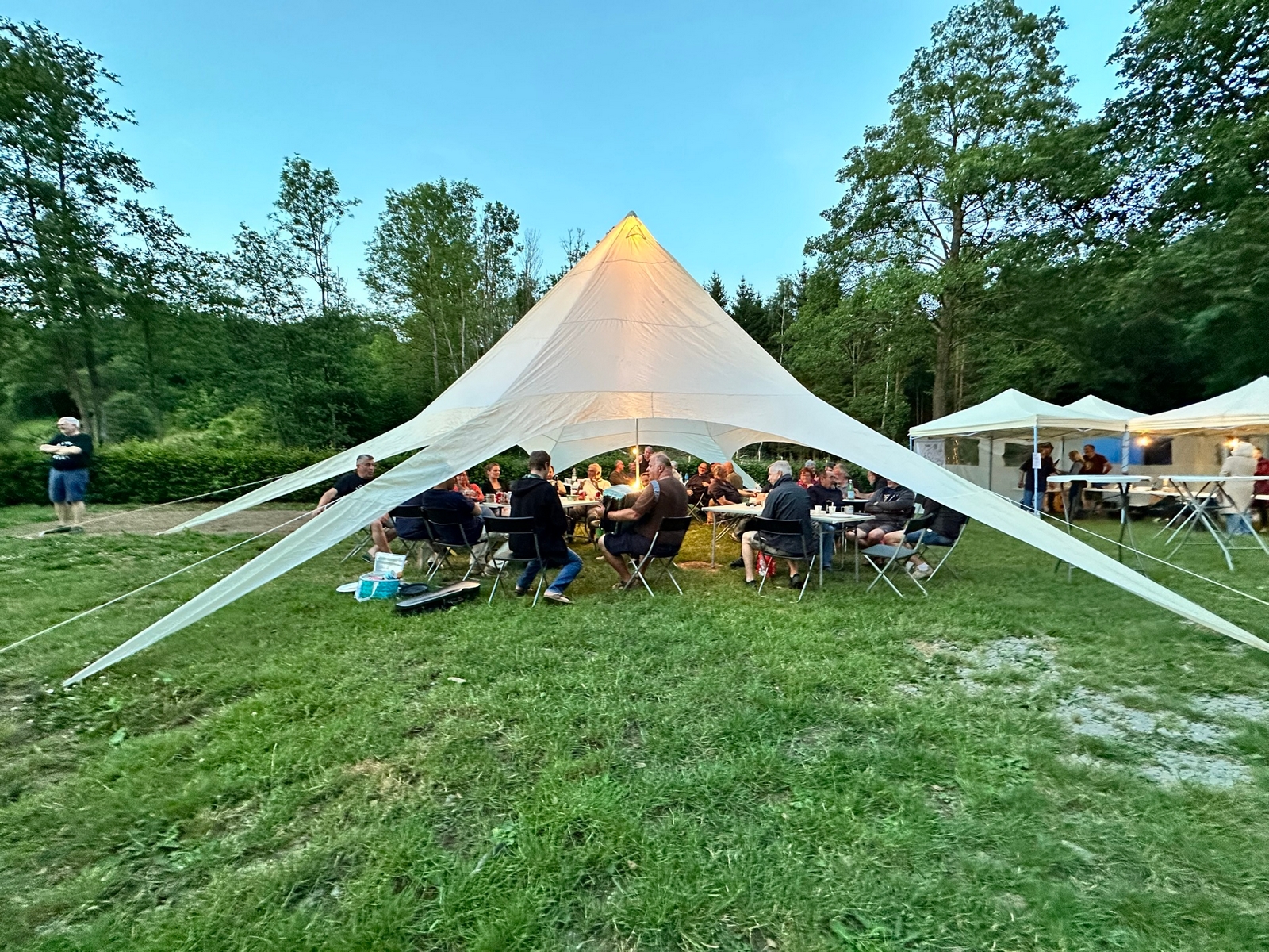Aller il est temps de retourner au Domaine de l’Aisne , camping près de Érézée où nous sommes réunis. Une autre belle soirée nous attend.
