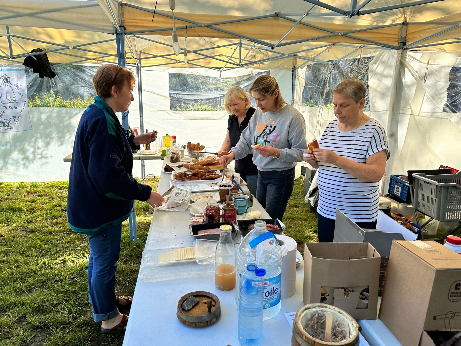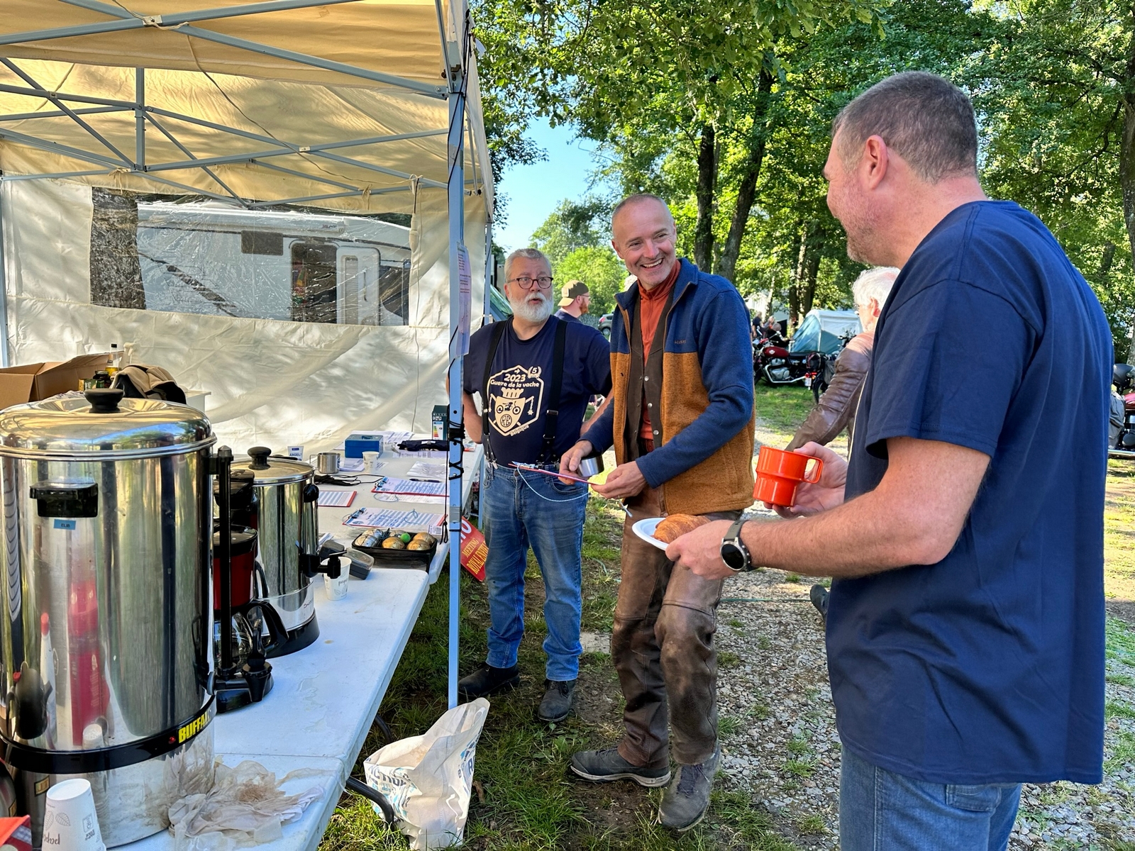 Le bivouac se réveille, la nuit a été reposante. Le petit déjeuner, préparé par nos hôtesses et hôtes avec beaucoup de bienveillance.