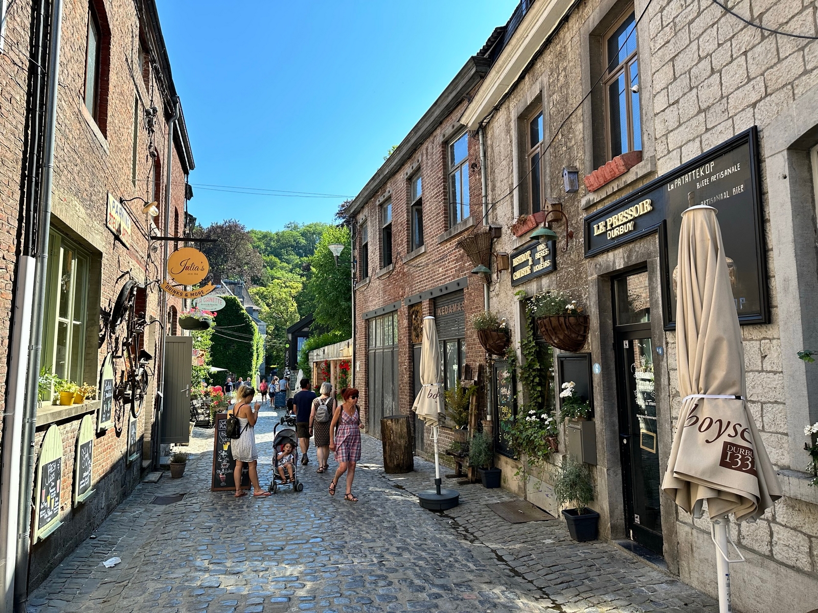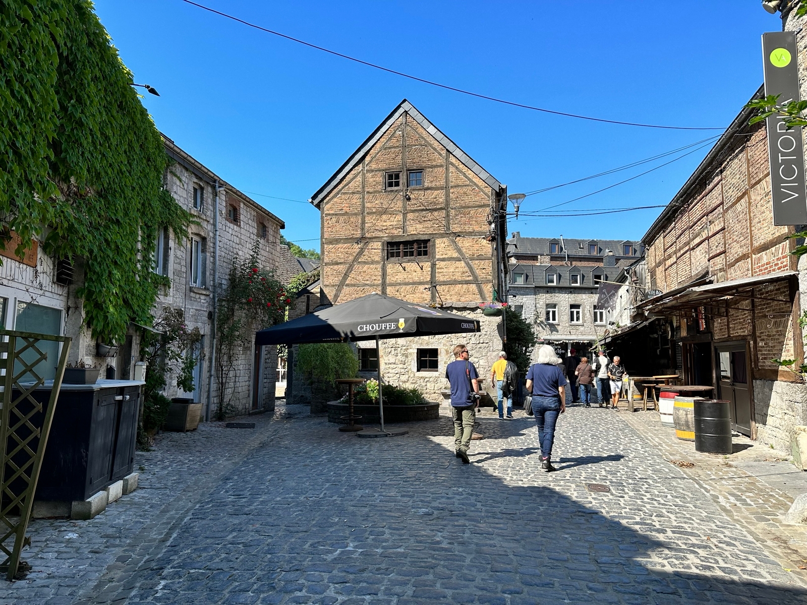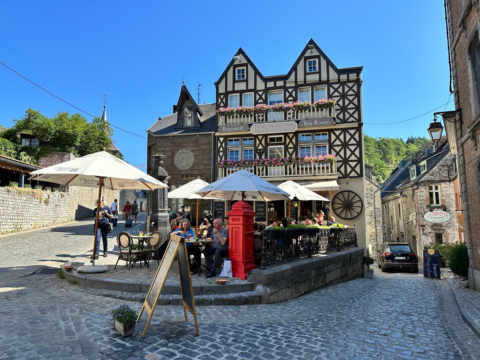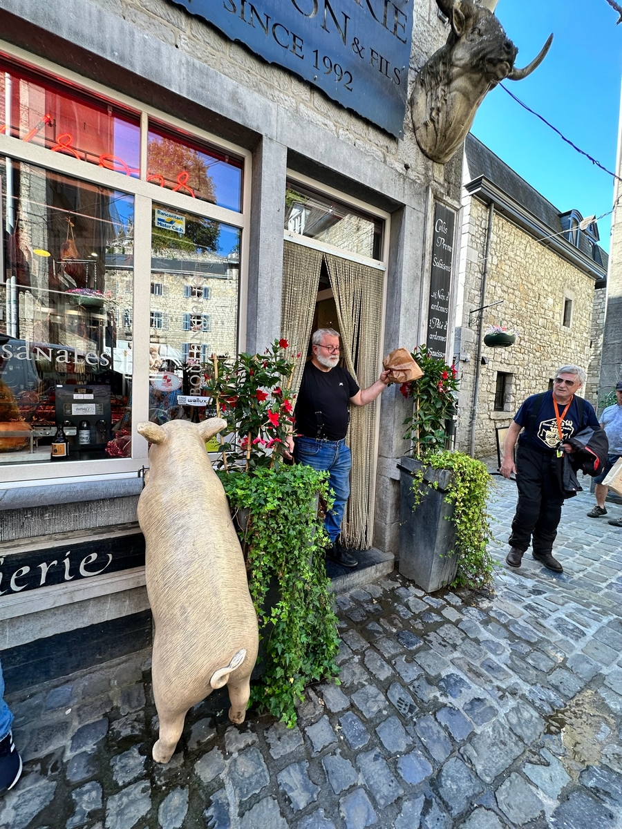Toujours le beau temps au réveil, la soirée a laissé des traces par endroits, les cheveux qui tirent un peu… Bon il y a une promenade avant de repartir, j’en ferai une partie, car 475 km m’attendent. Les groupes se reforment et après être passé au bureau du camping, je rejoins un groupe pour une petite visite de Durbuy, belle cité de caractère. Cela valait le coup de partir à Midi seulement.