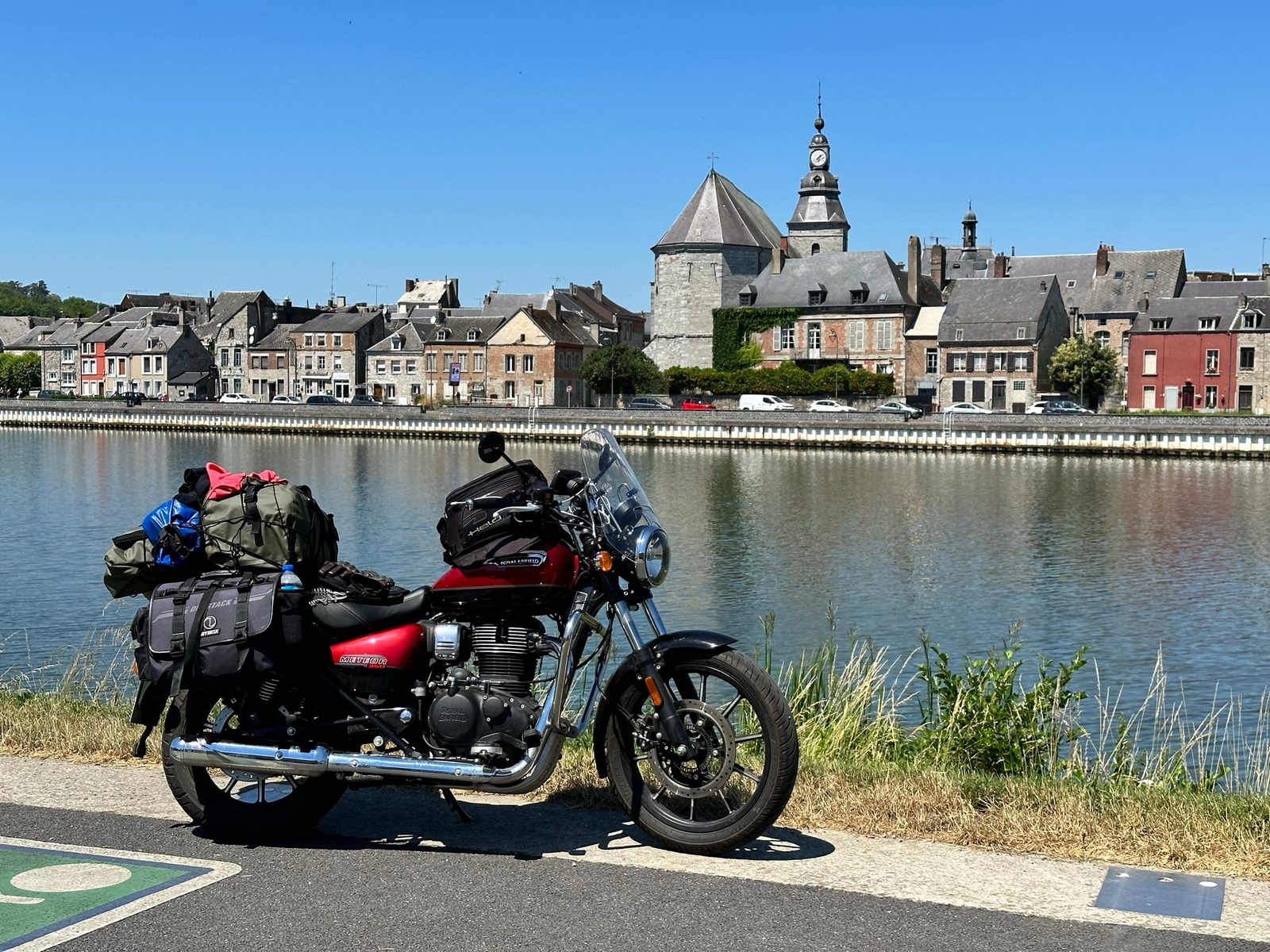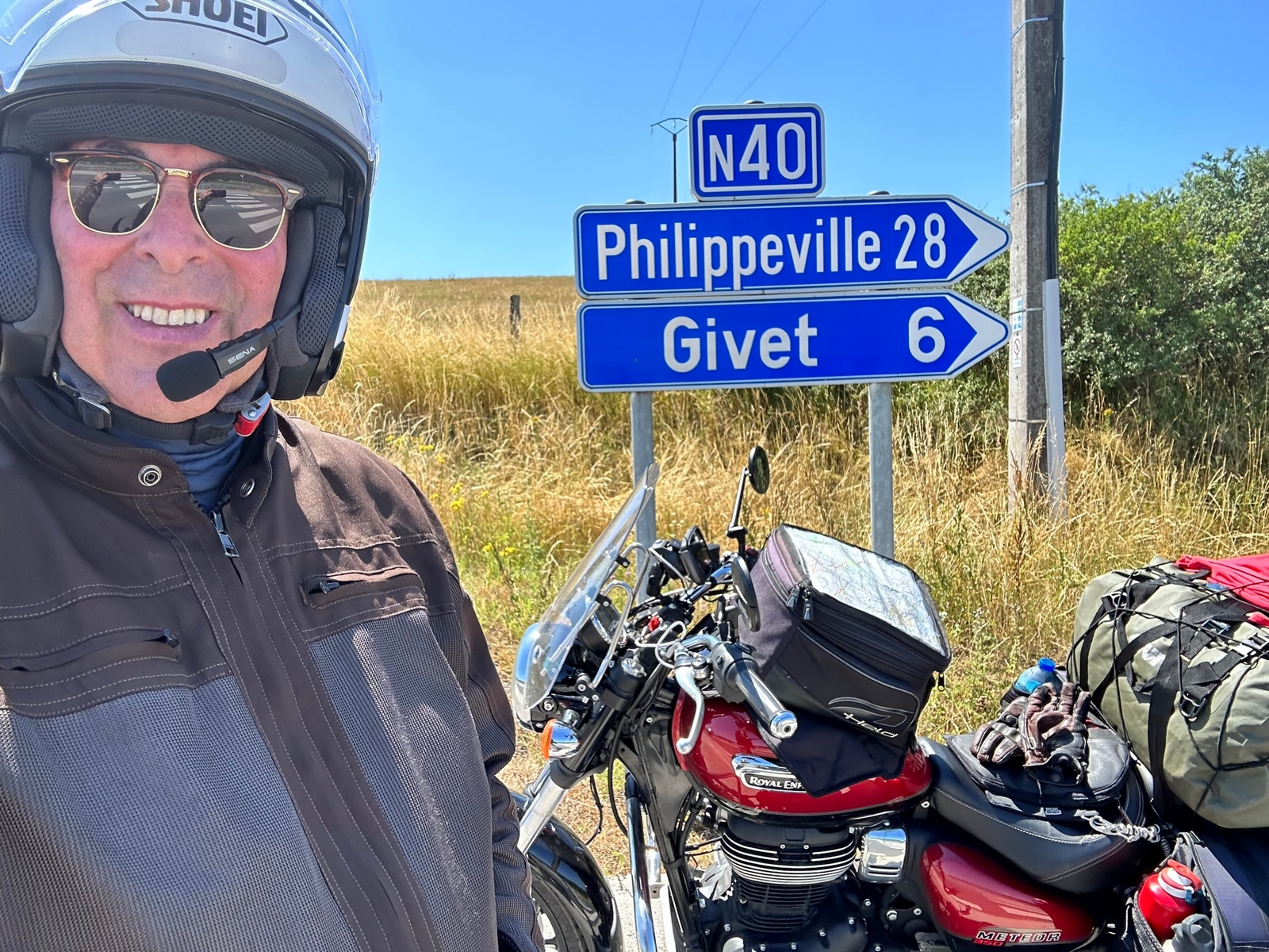 À midi me voilà parti, je rejoins la France par Givet et la vallée de la Meuse, la température est chaude 28 degrés, je descends plein Sud, passant par le chemin des Dames, là aussi ça été saignant dans le coin en 14-18, ils ont laissé pas mal de cimetières dans la région. Après Château-Thierry je rejoins Fontainebleau où je me dis plus que 2H, le soleil se couche lorsque je rentre dans le Gâtinais, plein de souvenirs de ce super week en Belgique 🇧🇪. Aller j’y retourne à la mi-Août pour rejoindre les copains à Gedinne , pour un week-end de courses de motos anciennes, Anglais, Allemands, Néerlandais et bien sûr Belges et quelques Français je pense s’affronteront sur ce parcours en pleine campagne des Ardennes Belges