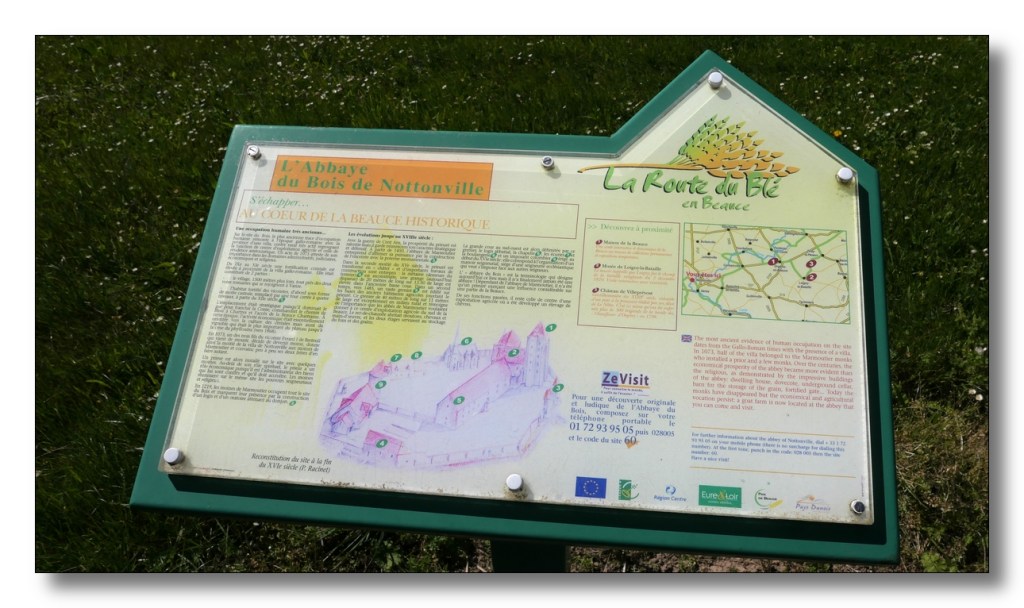 Dans le Bourg de Patay prenez à gauche pour rejoindre Villeneuve sur Conie, Péronville puis Varize, à la sortie Nord de Varize prenez Nottonville ou à peine 2 km plus loin vous trouverez un corps de Ferme , Ancienne Abbaye du Bois de Nottonville, qui eu un rôle important dès le 12ème siècle jusqu’à la guerre de 100 ans.