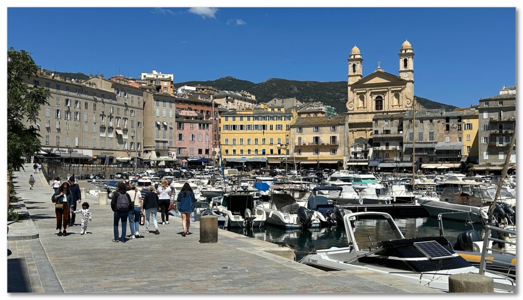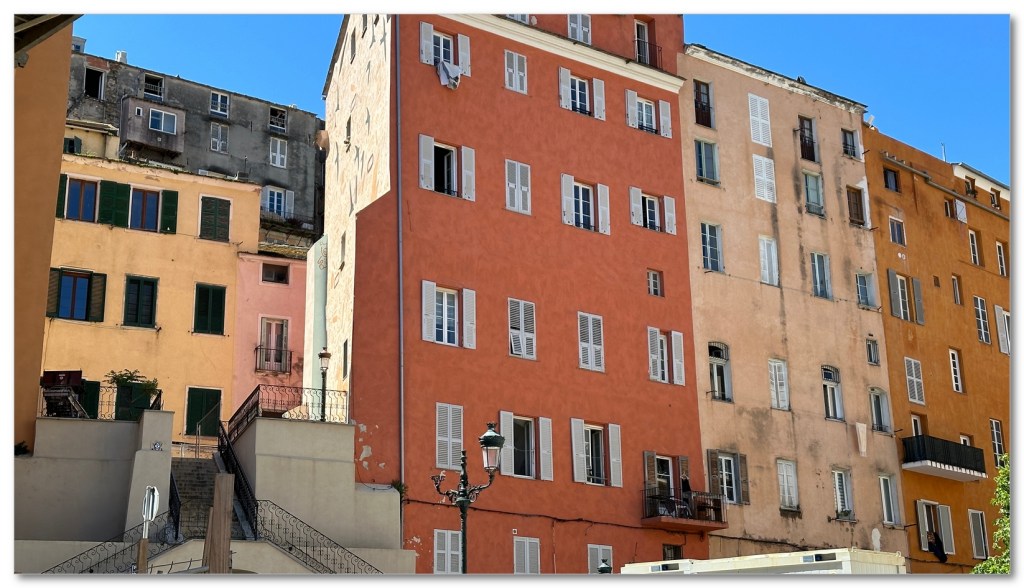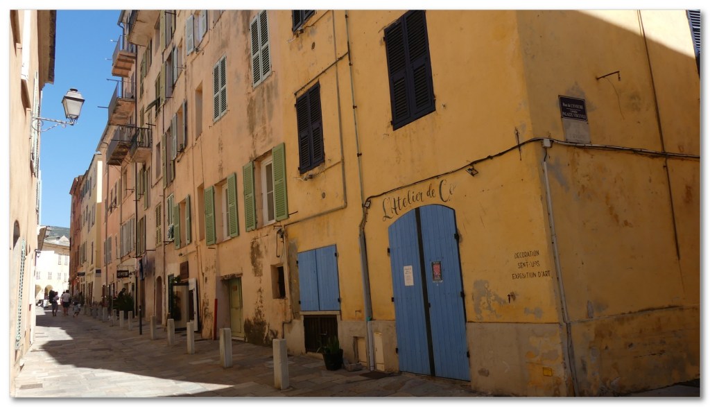 Arrivé à Bastia , j’arrive à me garer facilement près de la Citadelle, les parkings « 2 roues » ne manquent pas. La ville a beaucoup de charme et on s’y sent bien. Je déambule dans la citadelle puis vers le port. J’aime cette quiétude, vraiment. Ces façades colorées, ces petites montées, ces passages, par-ci par-là, des chats qui se prélassent. Je m’arrête devant une vitrine d’un confrère Photographe, il m’invite à rentrer. Quelques échanges sur son passé , lui a largement dépassé l’âge de la retraite, alors que moi elle est là à me faire de l’œil.