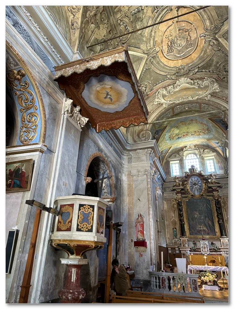 La Porta, village de la Castagniccia par excellence, pas très peuplé, mais imposant dans ce paysage de châtaigniers . L’église, du 18ème siècle, et son campanile occupe la place du village. L’intérieur, Baroque bien sûr, est superbe.