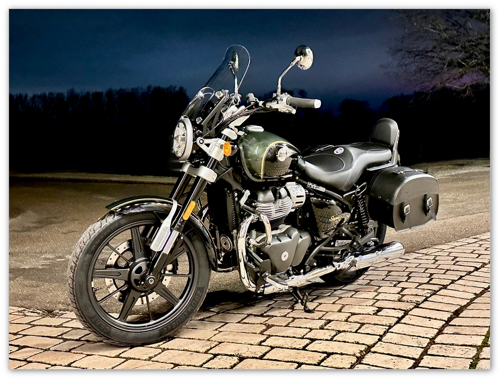 Lors de mes dernières vacances, cet été avec ma compagne, nous étions dans Les Ardennes. Près de 1000 Km parcourus durant une dizaine de jours, que ce soit en Belgique que dans le département des Ardennes en France. Magnifique région, j’y reviendrais certainement dans un prochain article. Nous avions pris ma 350 Météor, chouette moto, qui venait juste d’être équipée d’amortisseurs de chez Shock Factory, de fabrications française dans le département de l’Isère. Outre l’efficacité de ses nouveaux amortisseur, mon 350 cc en duo était à mon goût un peu léger dans les cotes du massif Ardennais. Alors j’ai commencé à lorgner vers un moteur plus puissant dans la même marque, Royal Enfield.