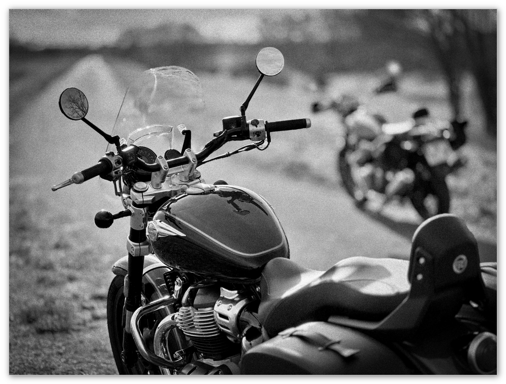 La Classic est tellement belle(voir ci-dessous) que je n’oserais pas lui mettre des valises et un top-case dessus pour les voyages en duo. Ce serait un coup à ce qu’on nous jette des pierres lors de notre passage pour l’avoir enlaidie.