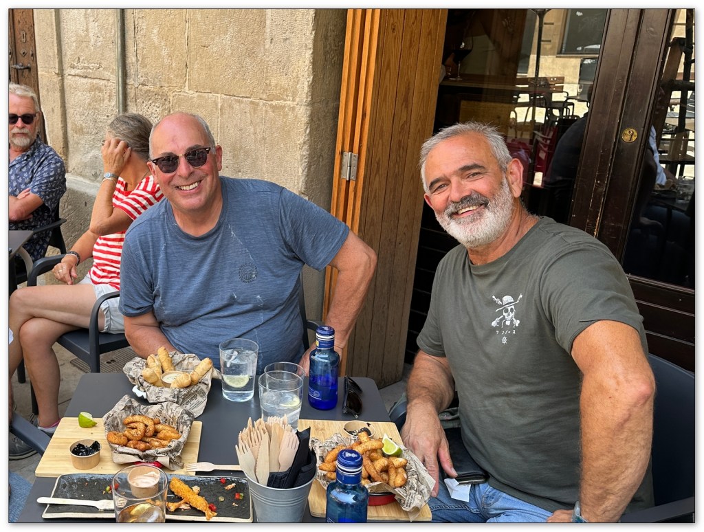 Luis et moi, c’est le résultat d’une petite bande de copains de la banlieue de Lyon. Eux roulaient déjà à moto et moi avec ma mobylette, 3 ans plus jeune, c’était le débuts des années 80’s. Luis me fait découvrir Bruce Springsteen, et depuis cela nous a jamais quitté. Entre temps j’ai passé le permis, 1981. Et voilà où ça nous mène , 46 ans après d’amitiés sans failles, nous voilà à nouveau en Espagne pour aller voir Springsteen à San Sebastian dans quelques jours. Un mois plutôt, nous étions déjà ensemble au Vélodrome, à Marseille pour le concert.