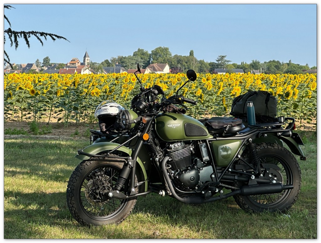 Mais, étant du genre à ne pas perdre de temps, j’ai trouvé l’occasion, que je recherchais, un Side-Car , pas trop puissant, facile d’accès et dans le rapport qualité-prix que je cherchais. Le hasard a fait que je trouve mon bonheur dans mon département du Loiret (45), à moins de 80 km de chez moi. Un MASH Side Force 445 cc. Et me voilà de retour chez moi par la campagne Loirétaine et les bords de Loire, début Juillet.