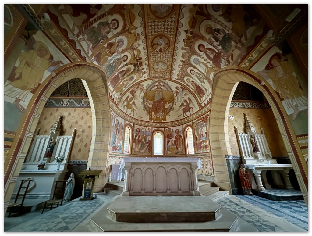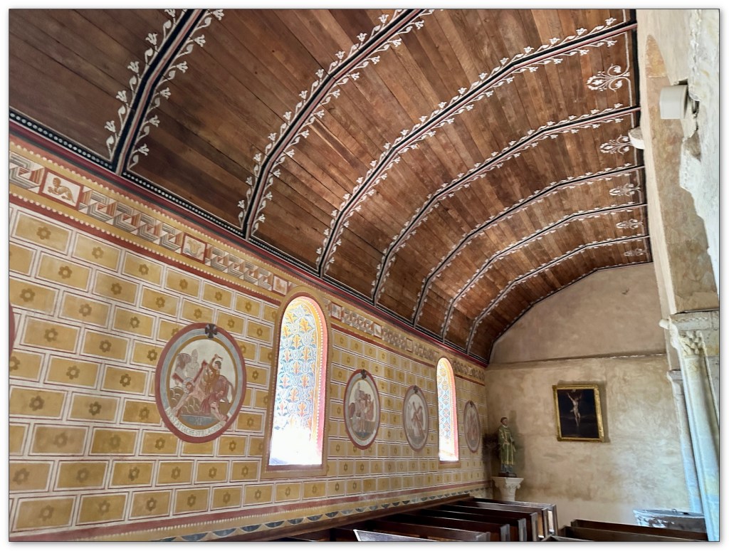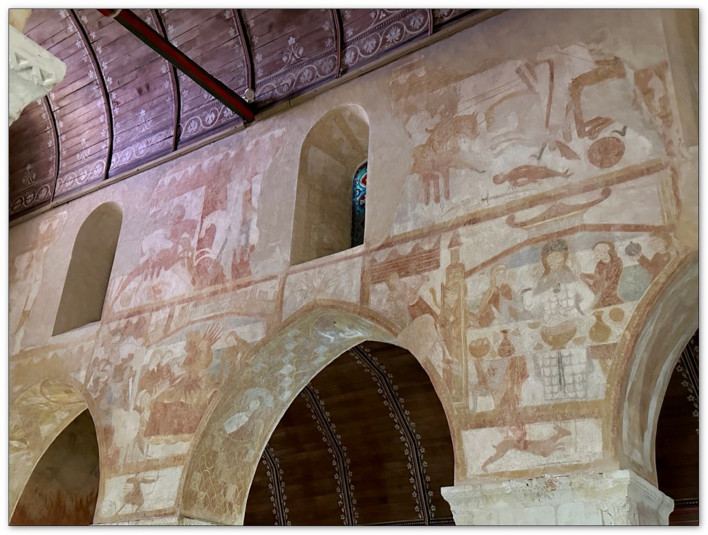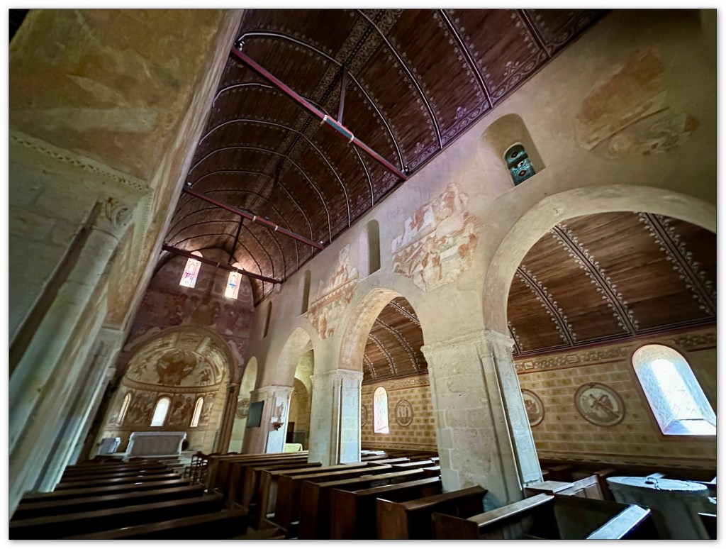 Je continue ma route, je repère une église perchée dans le village de Pocé sur Loir, une petite visite et je découvre un intérieur revêtu de très belles fresques romanes.