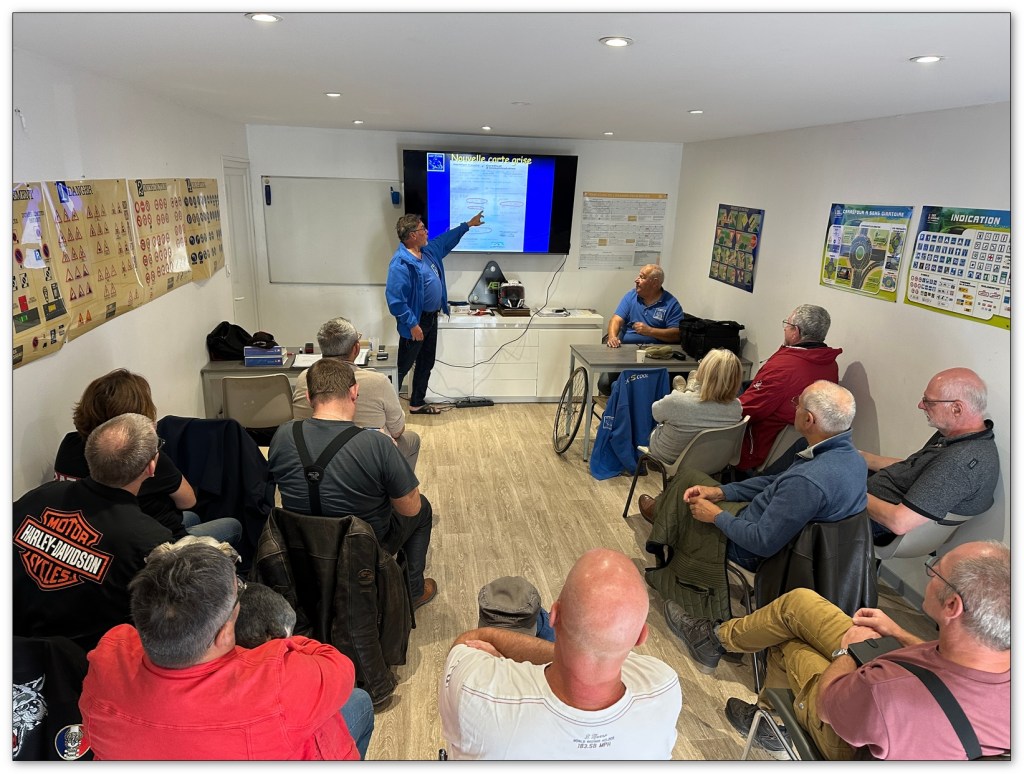 Présentation de l’association, de chaque stagiaire, nous exposons notre parcours moto, profession et la raison de notre présence ici et l’intérêt pour le side-car qui nous réunit.