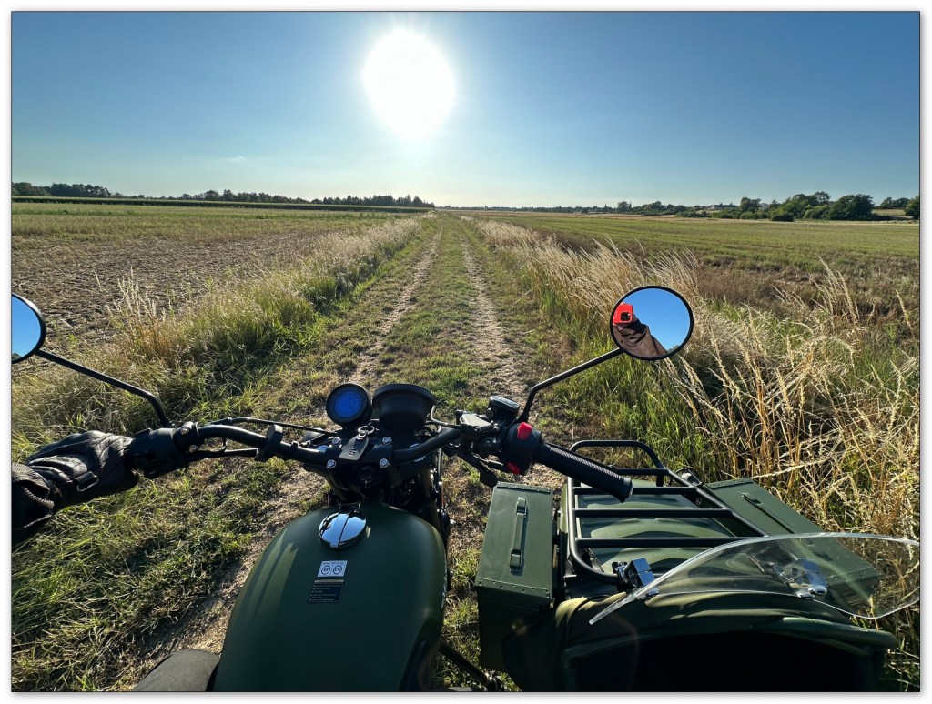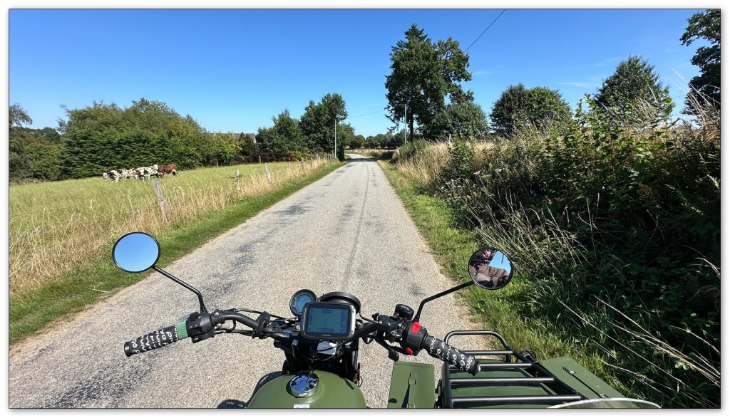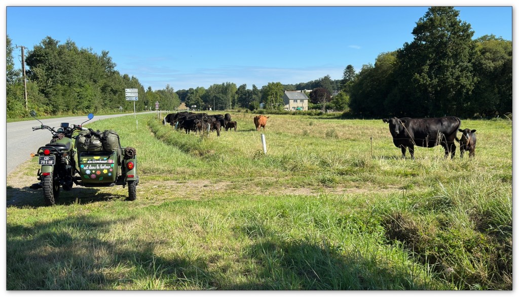 Je quitte la Bretagne pour la Normandie, les routes de campagne me mènent gentiment vers la région centre. Le side-car se comporte à merveille sur ce réseau secondaire. C’est l’idéal.