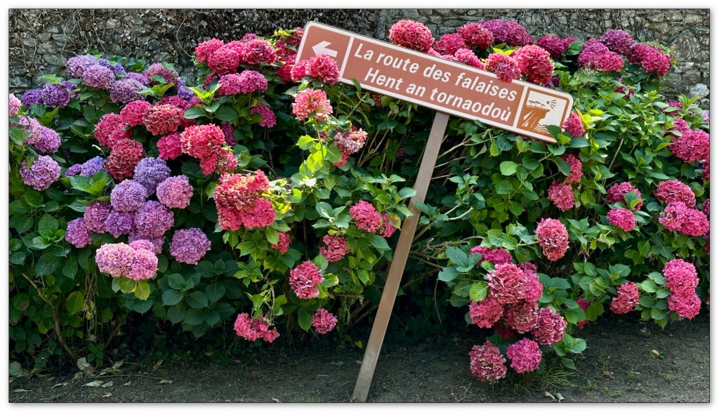 J’avais repèré cette petite route, il y a quelques années, et je m’étais promis de revenir la faire à moto. Parfaite pour flâner. A la sortie de Paimpol, après l’Abbaye de Beauport, vous trouverez sur votre droite, un panneau vous indiquant cette route à suivre jusqu’aux abords de St Quay Portrieux. N’hésitez pas, vous passerez de paysages panoramiques surplombants les falaises aux petits hameaux et sous-bois de la Côte de Goëlo. Et tout cela fleuri de massifs d’hortensias et d’agapanthes.