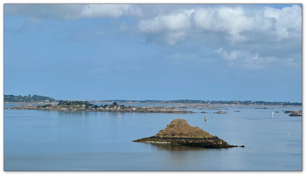 Je ne peux pas m’empêcher d’aller à Plougrescant, qui est, selon moi, un des plus beaux endroits de Bretagne. Je connais sa côte par cœur, photographiée il y a une vingtaine d’années pour mes cartes postales et cadres panoramiques que je vendais dans mon magasin de Tréguier. Et puis je l’ai tellement aussi parcourue en Kayak de Mer à toutes les saisons que cette côte je l’adore. Alors je vais suivre le tracé de la route Touristique, « La côte des Ajonc » dès le centre-ville de Plouguiel. Je le conseille à tout le monde ce tour est juste magnifique par le coté authentique de cette côte.