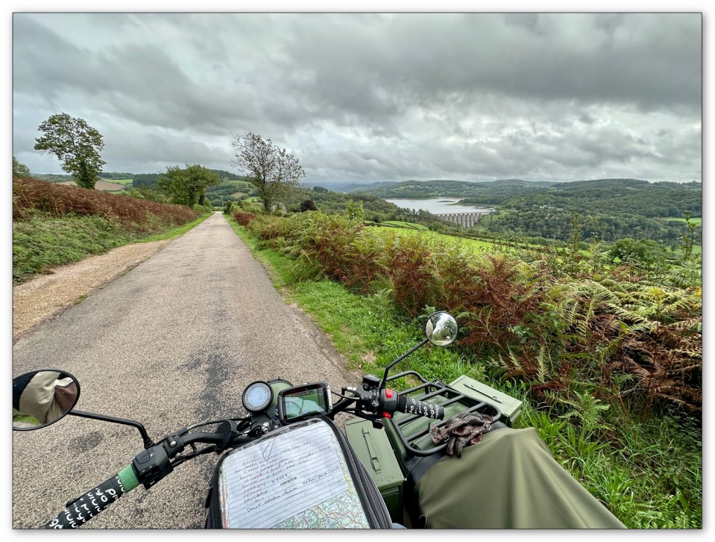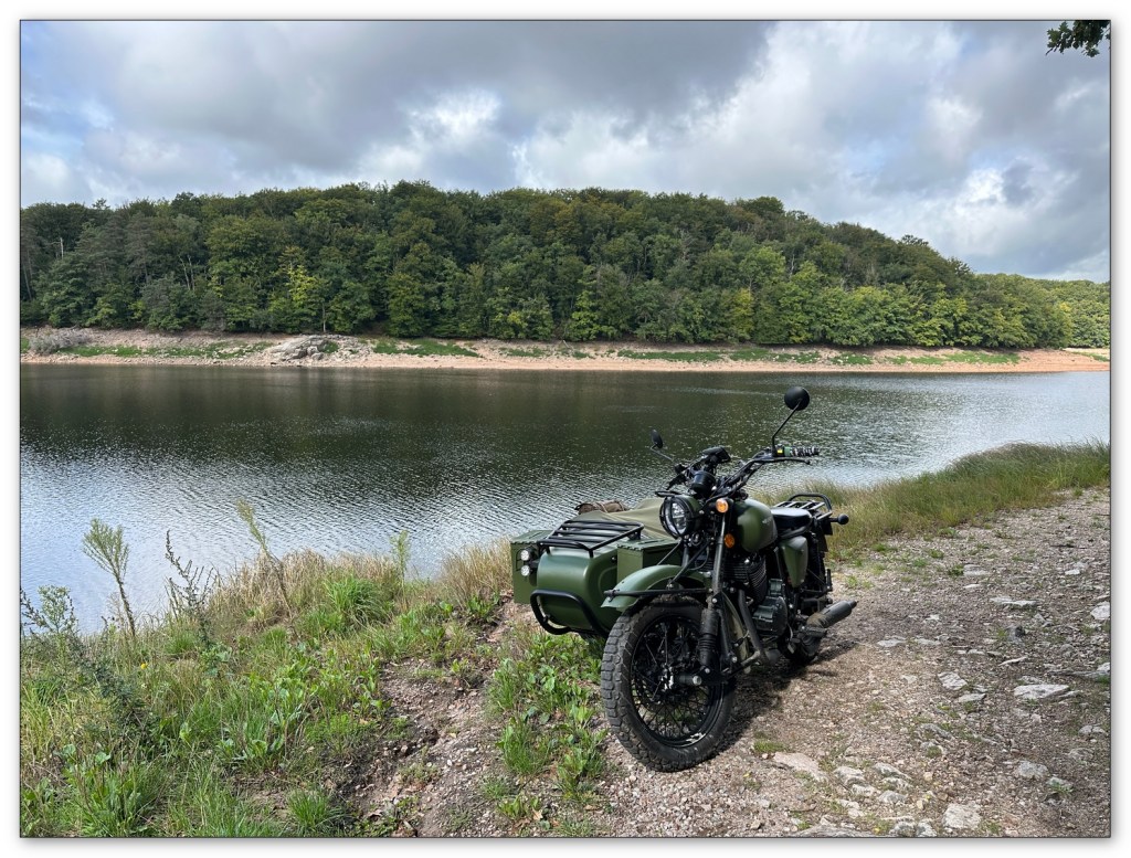 Nous prenons notre temps et nous démarrons à 10h. Mon tracé est dans ma tête, cela fait déjà plusieurs fois que je le prends et il est parfait pour découvrir le massif du Morvan, côté Lacs. Les routes nous font passer par le long du Lac de Pannecières, puis celui de Chaumeçon. Un lac où il m’est arrivé de pagayer avec des amis en kayak. Et il est aussi parfait pour y bivouaquer l’été venu. La baignade le soir après une journée de roulage et le matin au lever à 7h est extra.