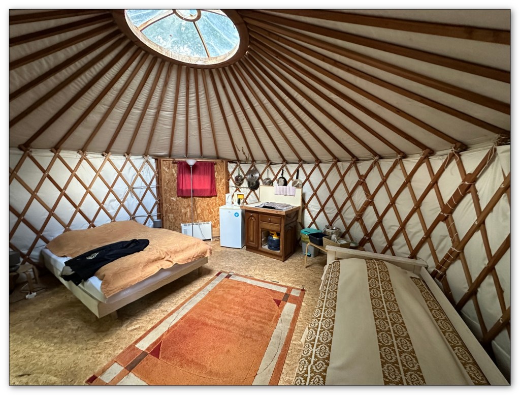 La nuit sera réparatrice sous une belle voie lactée. Notre yourte est chouette car elle nous permet de bien nous reposer. Demain c’est le retour.