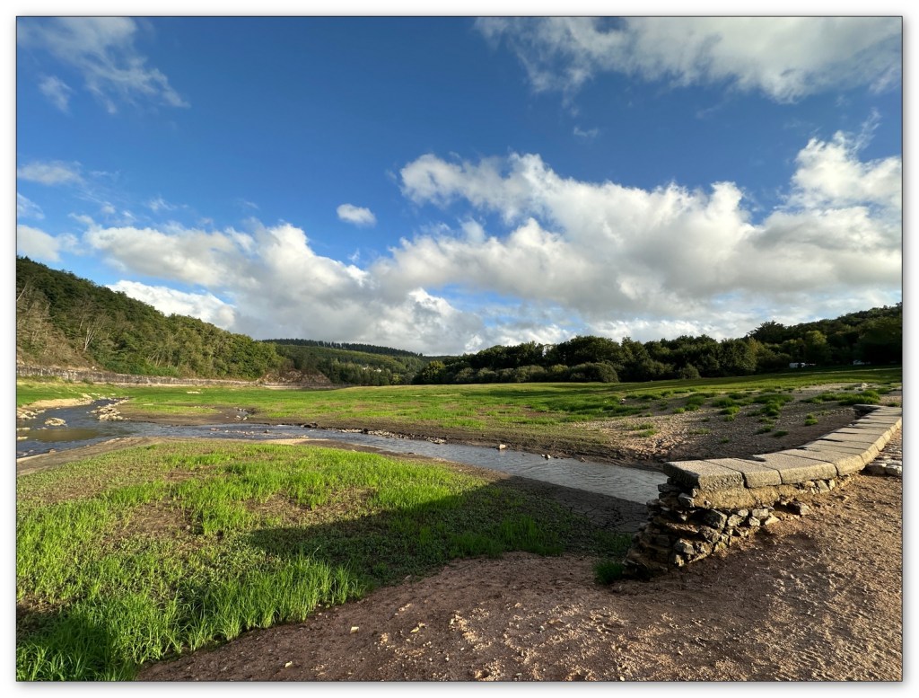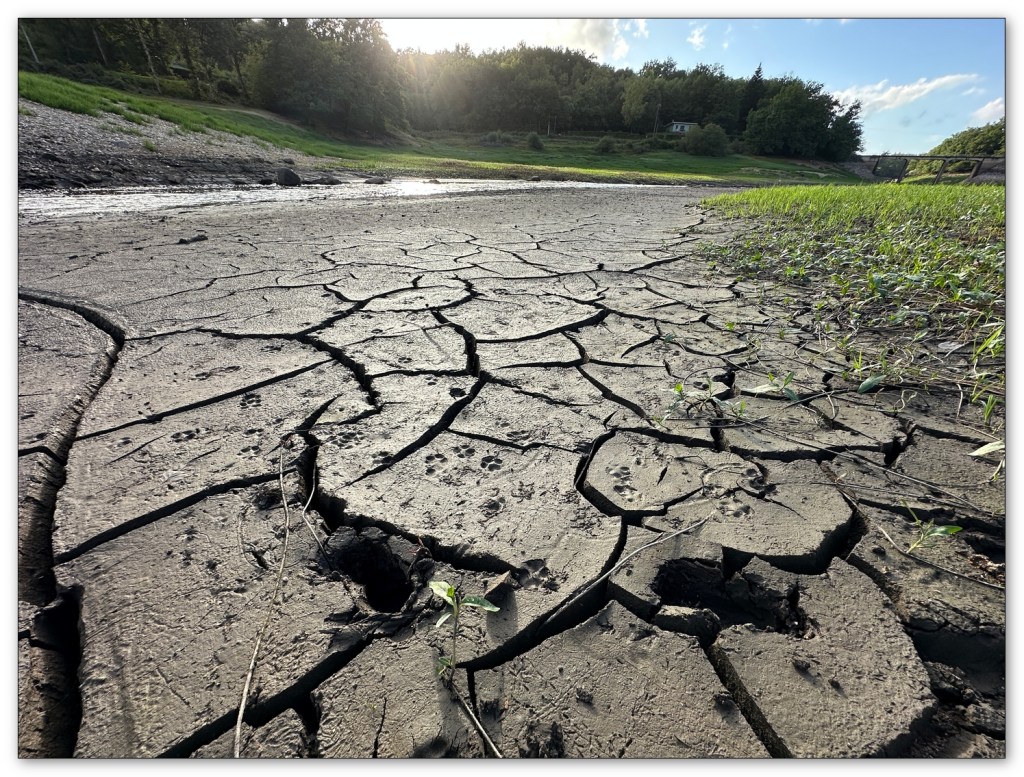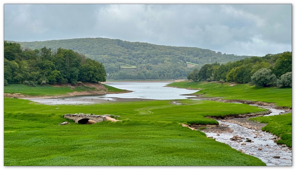 Une fois installés, nous partons marcher un peu, nous avions remarqué en arrivant, le niveau particulièrement bas du lac de Pannecières. Ce coup ci je ne traverserai pas en nageant, le lac dans sa largeur face au camping, comme lors d’un précédent passage chez Max.