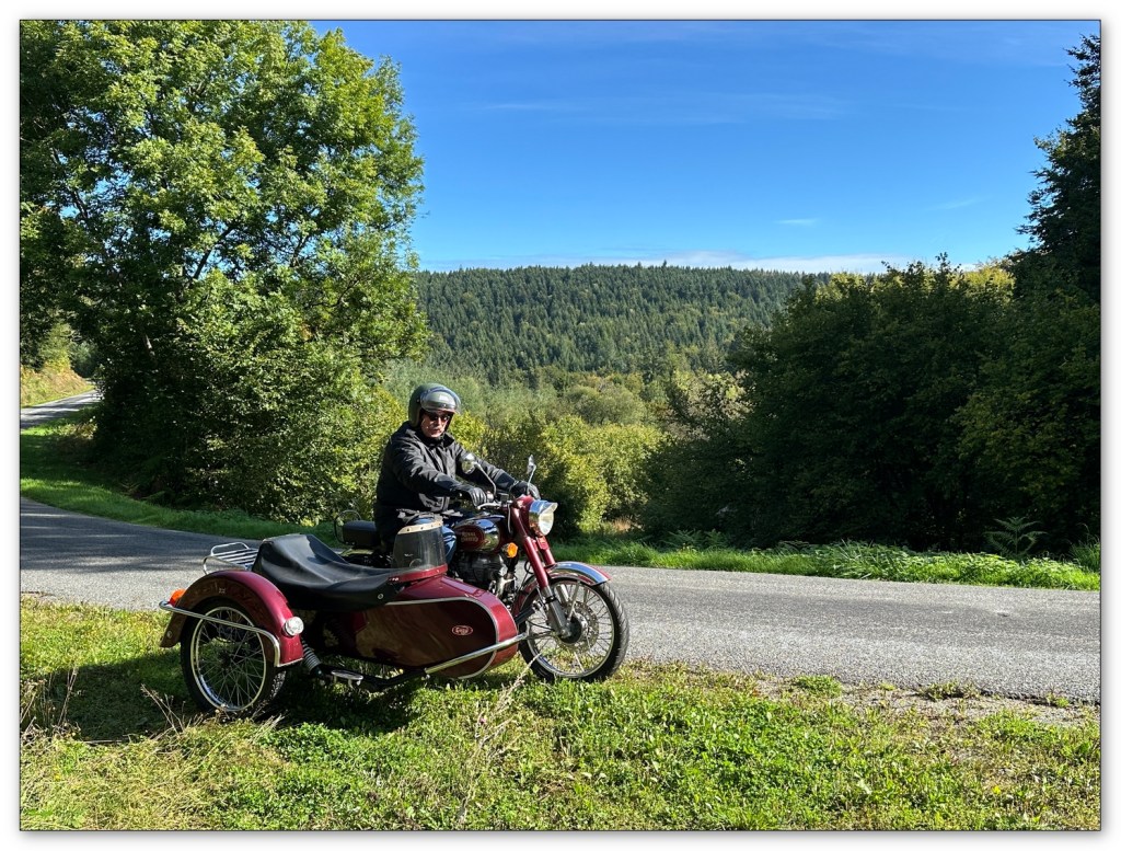 Avec un ami side-cariste, l’envie d’aller trouver des routes un peu plus vivaces que notre Sologne nous titillait. Pour cela nous avons le Morvan à 4h de routes pour nos petits bolides. une Royal Enfield 500 Classic et son panier Cosy de toute beauté et mon side-car Mash, 2 bons side-cars vintage, pas trop puissants mais qui font le travail.