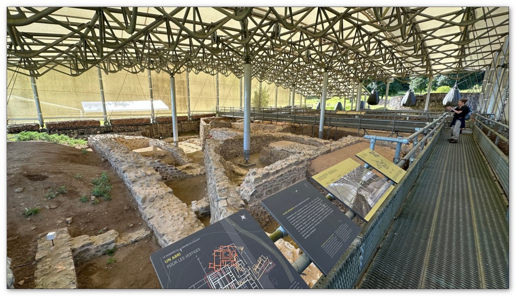 Nous commençons par le Mont Beuvray, J’adore ce coin, il y a là, le site et le musée de Bibracte qui vous fait découvrir ce qu’était Bibracte, capitale Gauloise du peuple Eduen, il y a 2000 ans. Que ce soit à l’intérieur du musée ou dans les bois du Mont Beuvray, vous réviserez vos leçons d’histoire apprises à l’école primaire. Bon là, c’est du haut niveau de recherche sur l’époque Gallo-Romaine. Je m’étais régalé l’an dernier lors de la visite. Vous avez même la possibilité de manger comme à l’époque, menu Gaulois servi comme autrefois, petites tables basses et couverts en bois. Je vous le conseille. Bon cette année, nous avons plutôt découvert l’extérieur, les fouilles sur le Mont Beuvray. Seulement 10 pour cent ont été mises à jour.