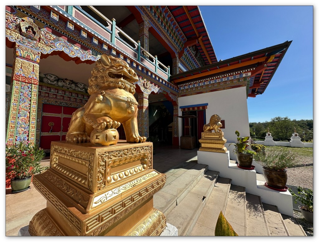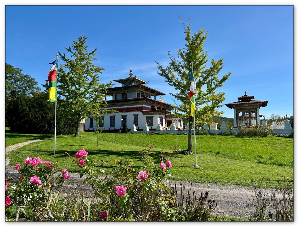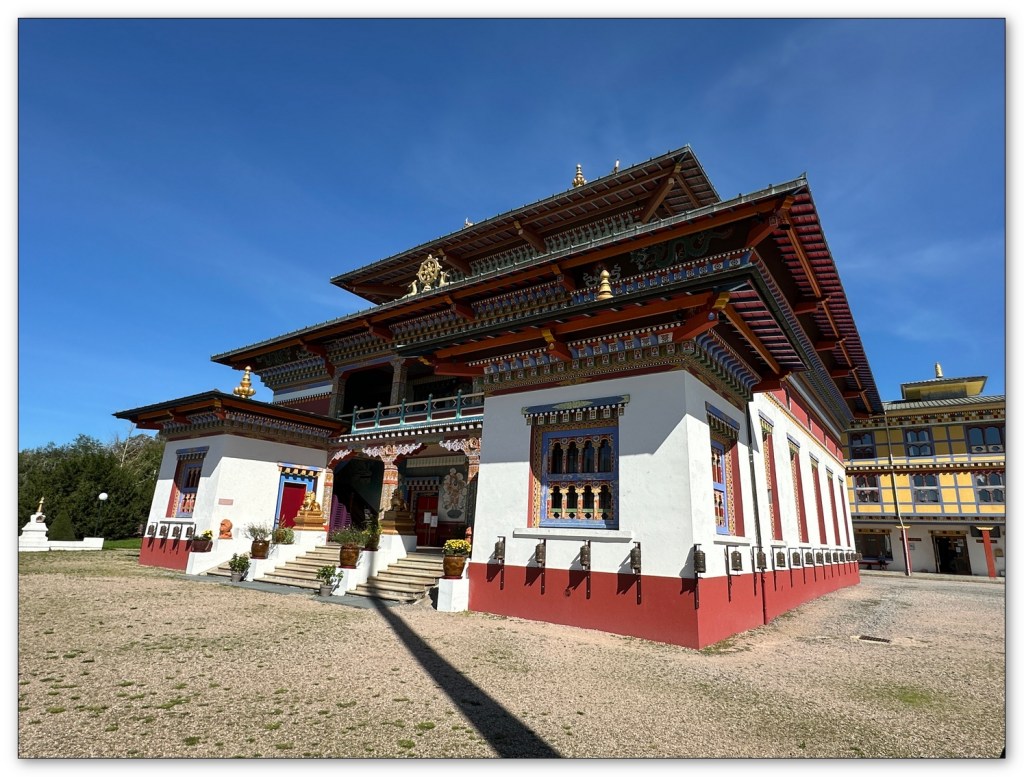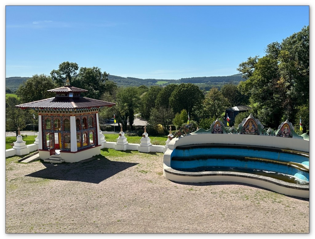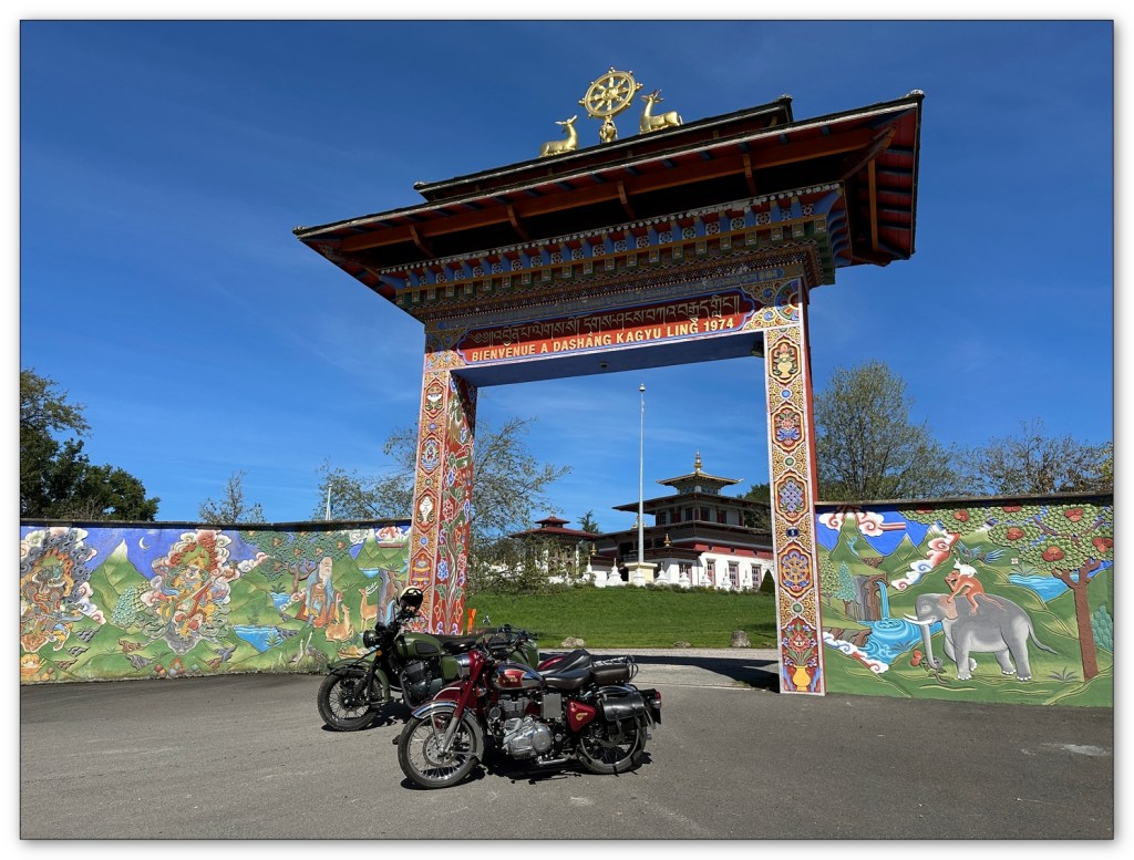 Nous continuons dans la plaine, j’ai une surprise pour Jean-Pierre, je le mène au centre Bouddhiste de la Boulaye (71). Vraiment le temps est magnifique, un plaisir pour mon ami et quelle surprise de se retrouver là au milieu de la campagne en Saône et Loire. Nous visitons les extérieurs, un passage à la boutique. Quelques emplettes, nous ne devons pas tarder. Si vous passez par là, je vous conseille d’aller visiter l’intérieur du temple, lieu de prière et vous y découvrirez un bouddha de toute beauté.