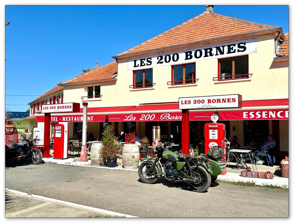 La route se fera tranquillement, mais déjà, les petites routes Morvandelles nous manquent. Arrêt-buffet au Relais des 200 Bornes, à Pouilly sur Loire. Un bon repas en terrasse et au soleil, quel bonheur pour nous deux.