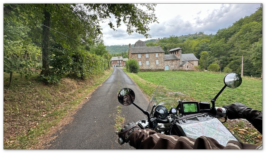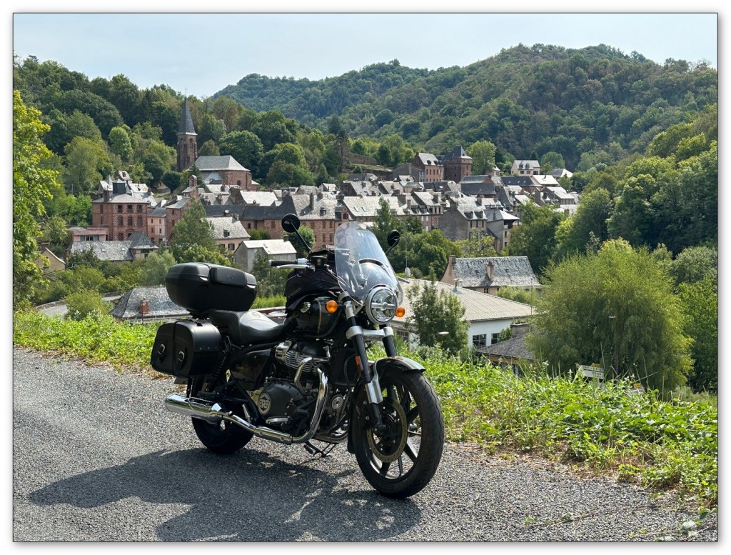 Nous rejoignons Saint Geniez d’Olt par une petite route , très gravillonneuse, et ça je n’aime pas trop avec cette moto. Nous prenons le temps de boire un pot, sans nous attarder, car nous y reviendrons dans la semaine.