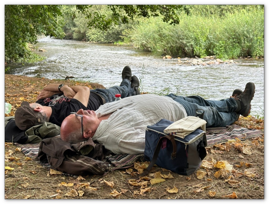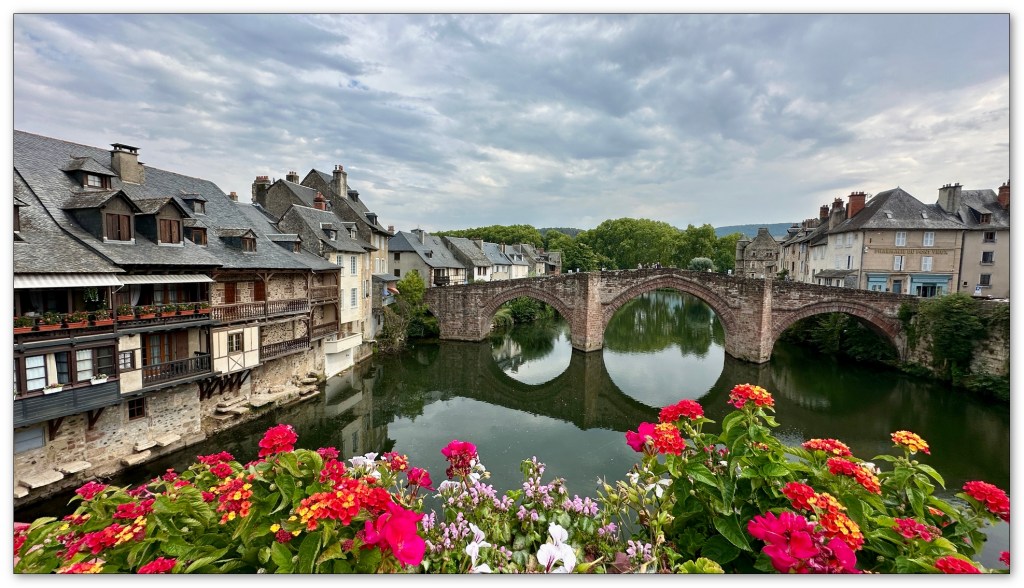 Nos 2 Tourangeaux arrivent , embrassades et un temps en terrasse et nous partons pique-niquer au bord du Lot tout près d’Espallion. L’après midi Sylvie et moi restons visiter Espalion, nos amis remontent vers le plateau de l’Aubrac, ils vont se régaler à n’en point douter.