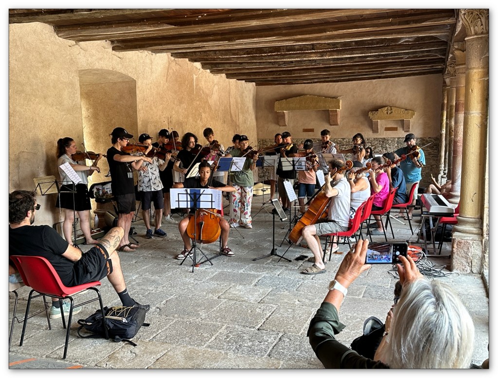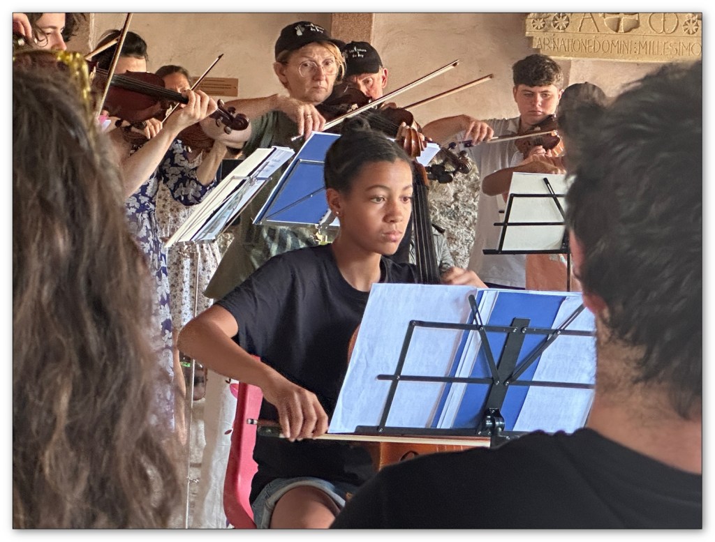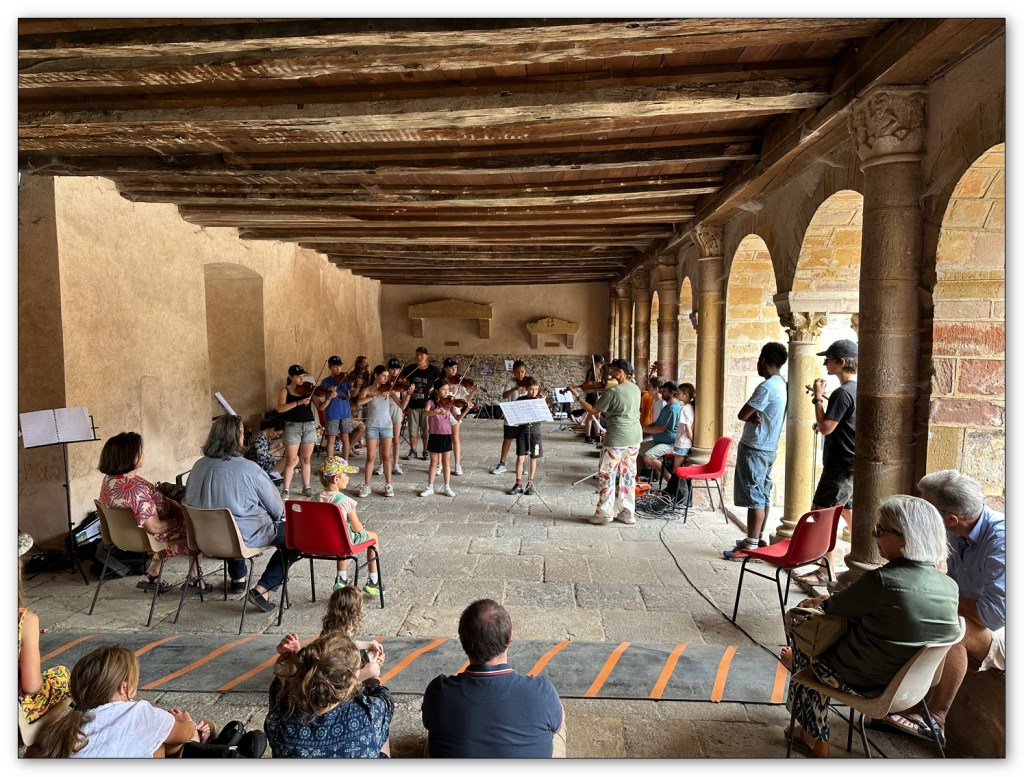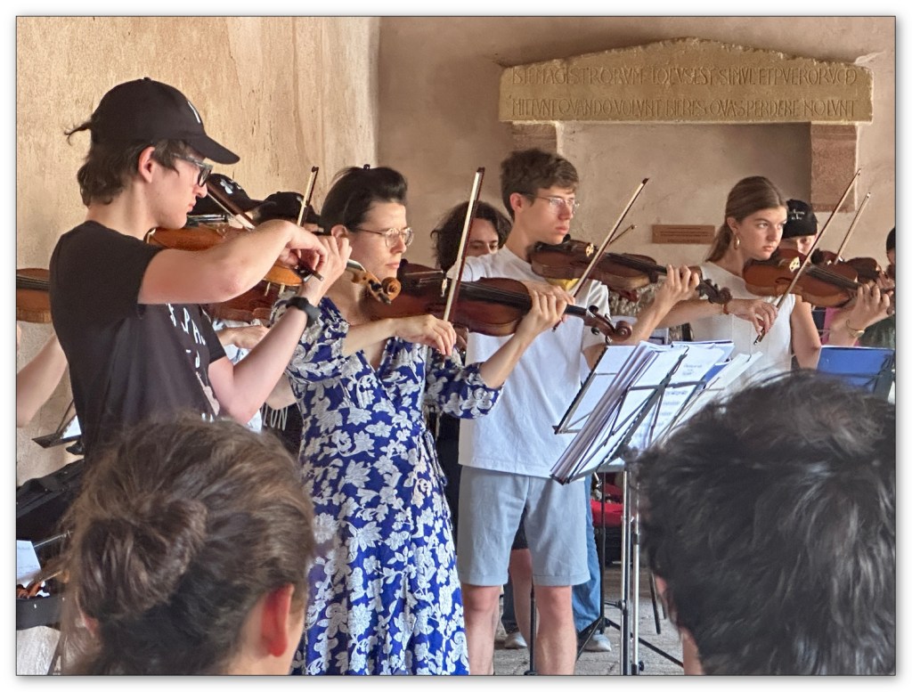 Nous sommes arrêtés par de jeunes violonistes (de l’école de violons de Bry sur Marne) qui doivent se produire demain ici même. Ils nous invitent à venir les entendre aux répétitions qui ont lieux sous le cloître. Nous ne manquons pas d’y aller et nous passerons un superbe moment.
