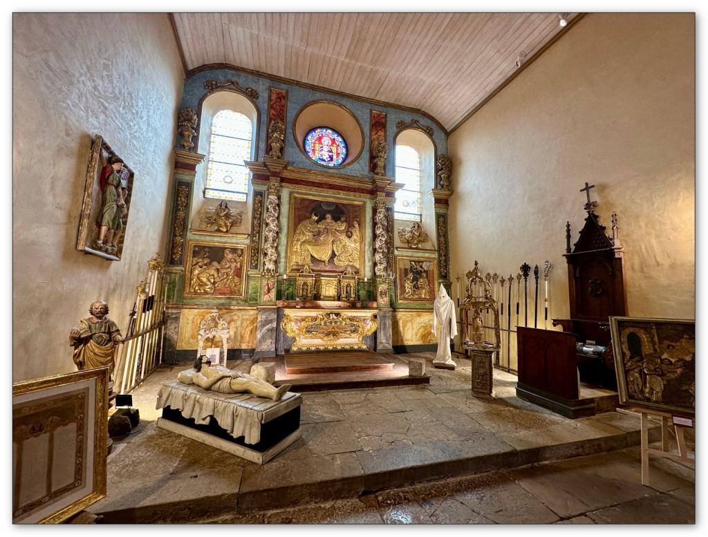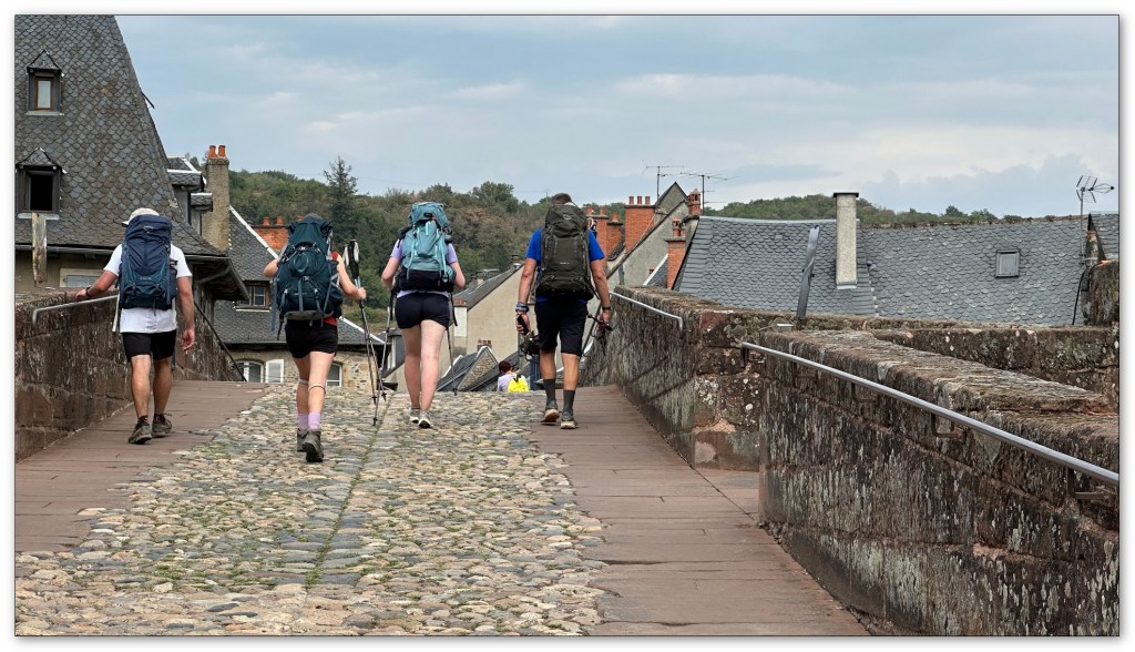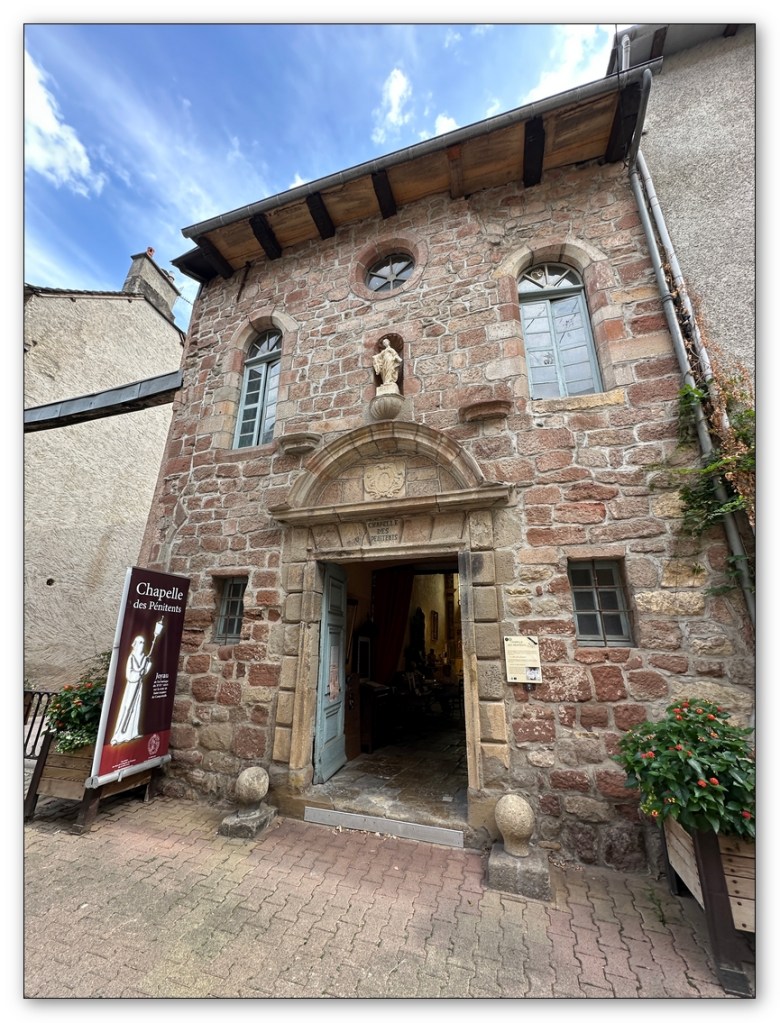 Nous on visite Espalion, le vieux quartier des Tanneries et le pont Vieux emprunté par les pèlerins depuis plus de 1000 ans. Suit la visite de la Chapelle des Pénitents, commentée par une dame très intéressante, histoire et objets d’art qui ne manquent pas d’intérêt.