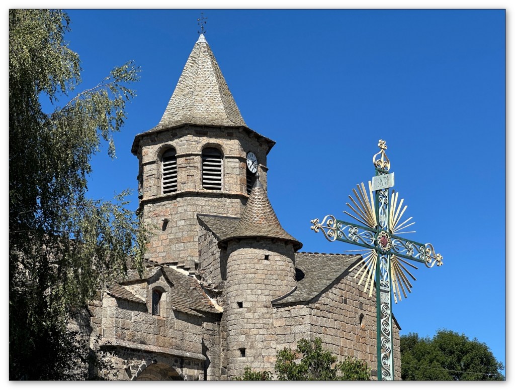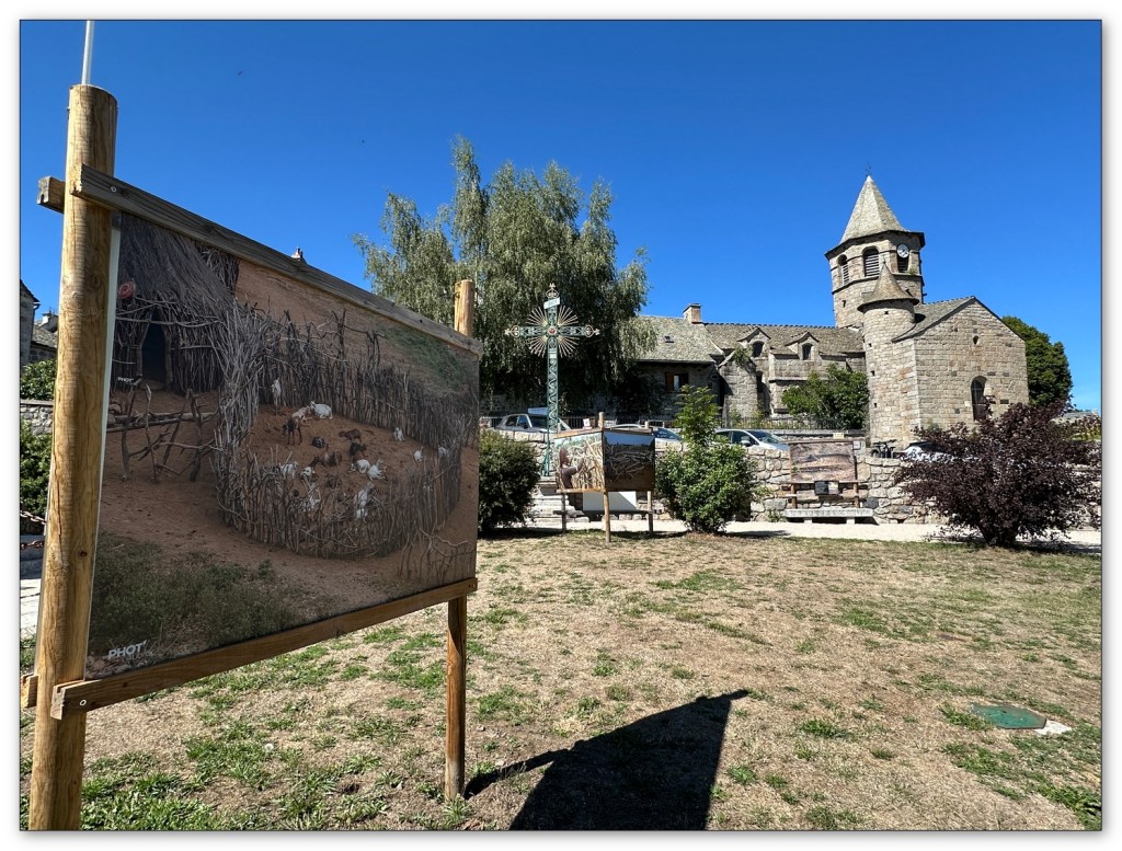 En route pour Nasbinals, coté Lozère de L’Aubrac. Visite de l’église et d’une expo photo sur l’esplanade.