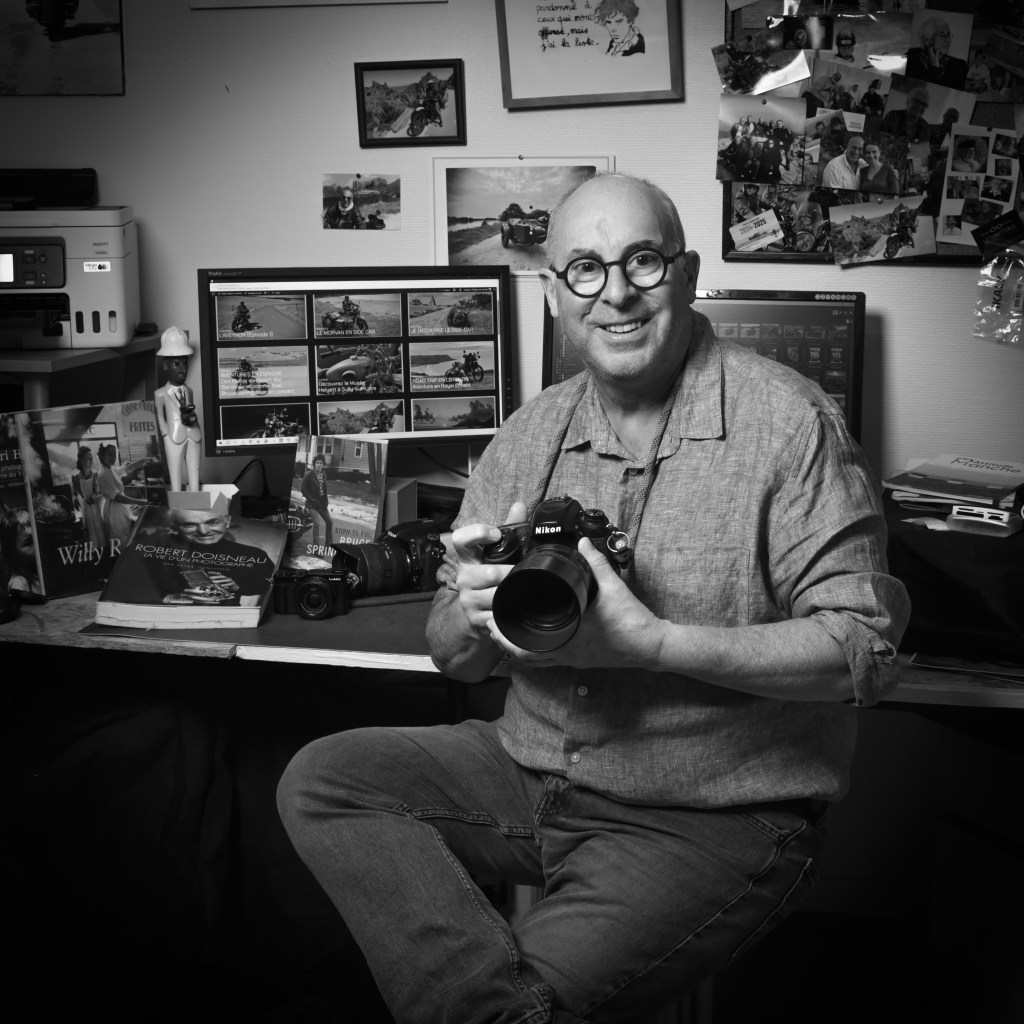 Artisan Photographe, j’ai travaillé autant en prise de vue qu’en laboratoire. Sur un paquebot de croisière comme sur des pistes de ski. Puis en indépendant. Plusieurs magasins de photo , toujours équipés d’un laboratoire couleur. Un bon millier de mariages durant une bonne partie de ma carrière , portraits et photos de paysages, j’ai fini mes quinze dernières années comme Photographe scolaire à réaliser la photo de classe et le portrait de chaque élève, un vrai bonheur tous les jours au milieu des enfants. Ce qui m’a laissé beaucoup de temps libre pour voyager à moto ces dernières années.